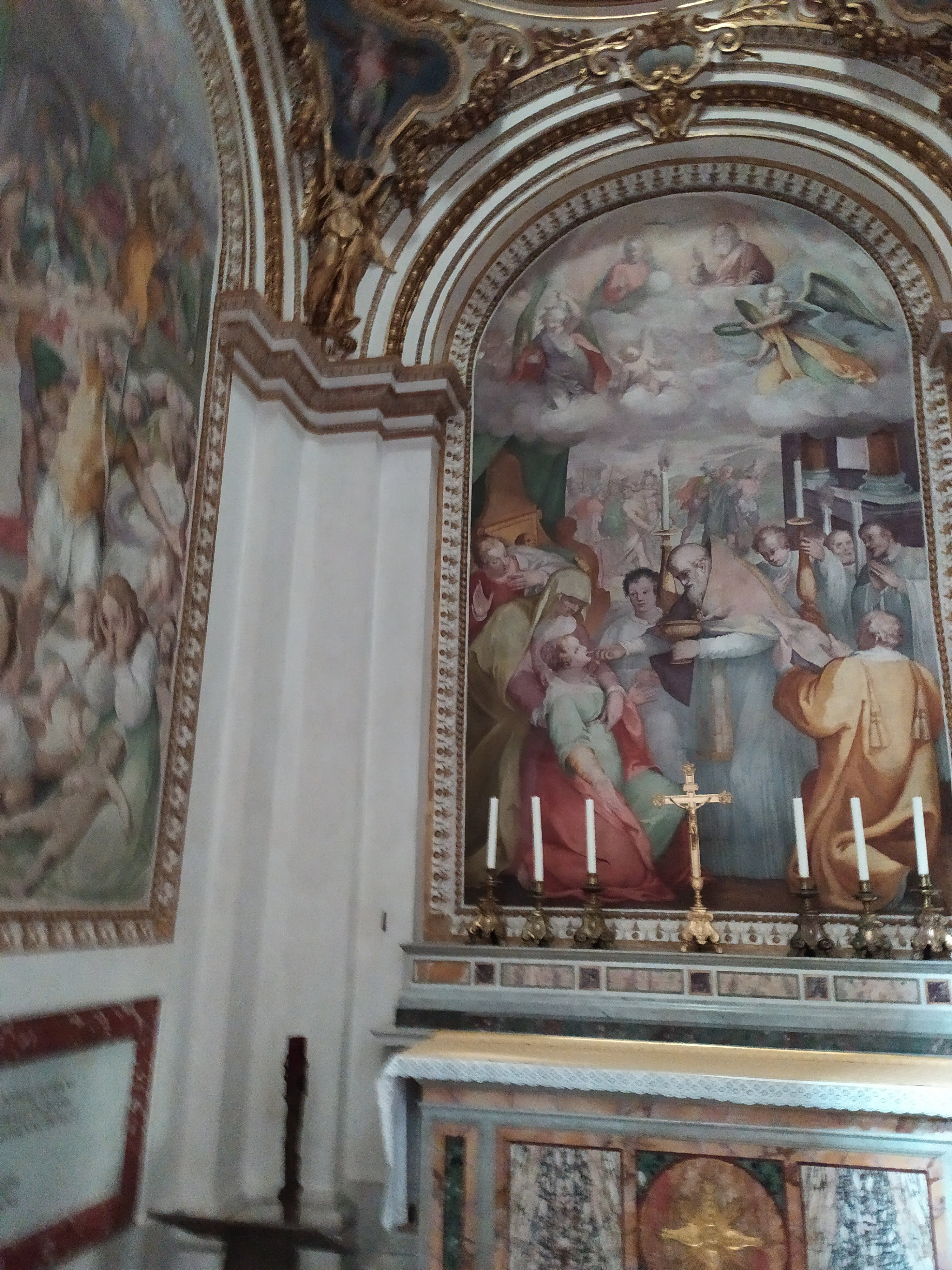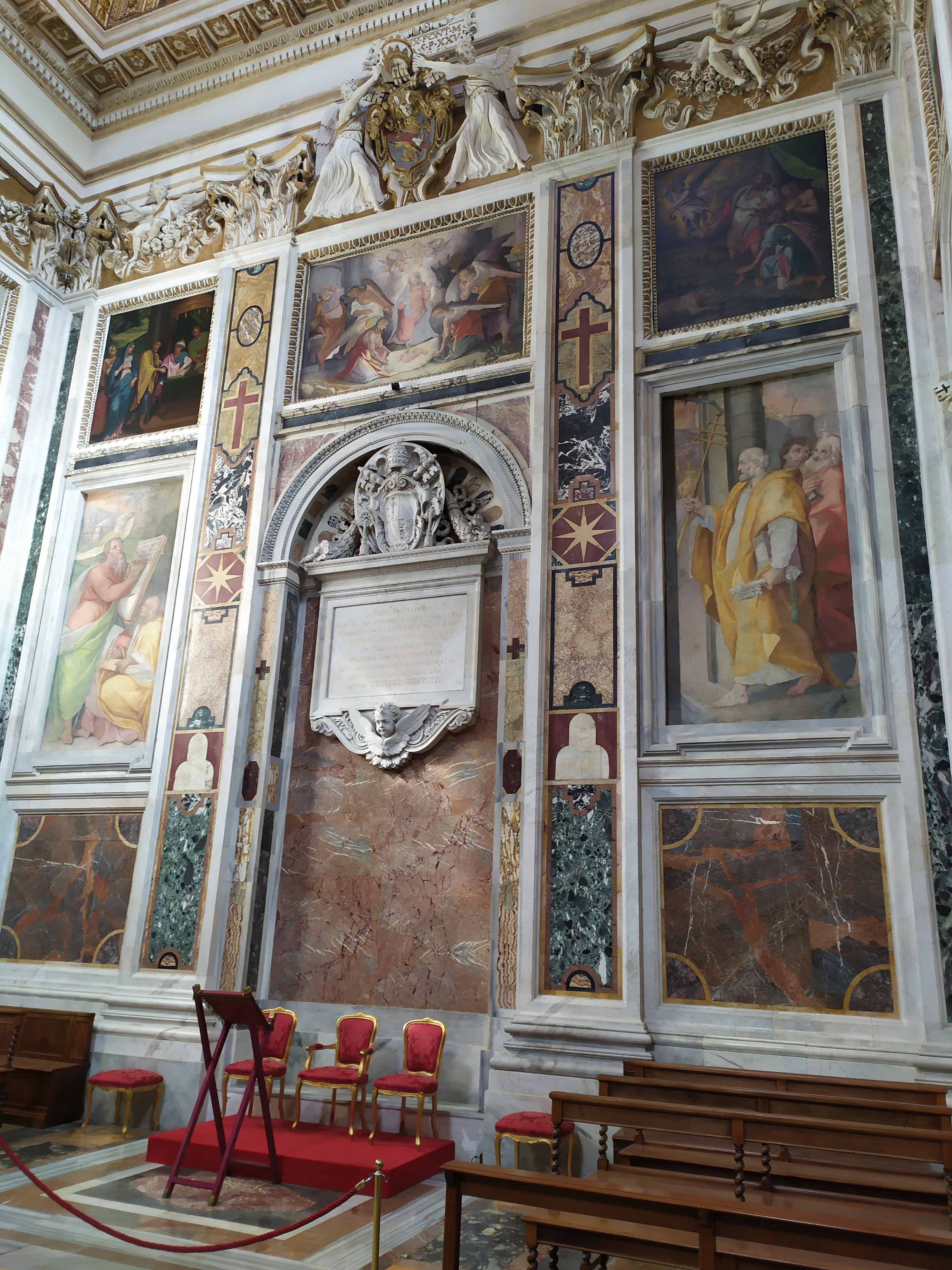 Сикстинскую капеллу украшают фрески, посвященные Святой Луции Сиракузской и Невинным младенцам. Согласно преданию, Луция принесла Иисусу тайный обет безбрачия и отказалась от помолвки с женихом из языческой семьи. Отвергнутый жених написал на Луцию донос, обвиняя ее в том, что она является христианкой. Подобное обвинение во времена правления императора Диоклетиана, жестоко преследовавшего христиан, считалось особо опасным. Луция предстала пред судом. Пройдя через жесточайшие пытки, она была убита ударом кинжала в горло. Перед кончиной она успела причаститься, о чем и свидетельствует фреска «Причастие святой Луцины». Под фреской в древнем саркофаге хранятся предполагаемые мощи пяти невинных младенцев, перенесенные из римской базилики Святого Павла по указу папы Сикста V.
