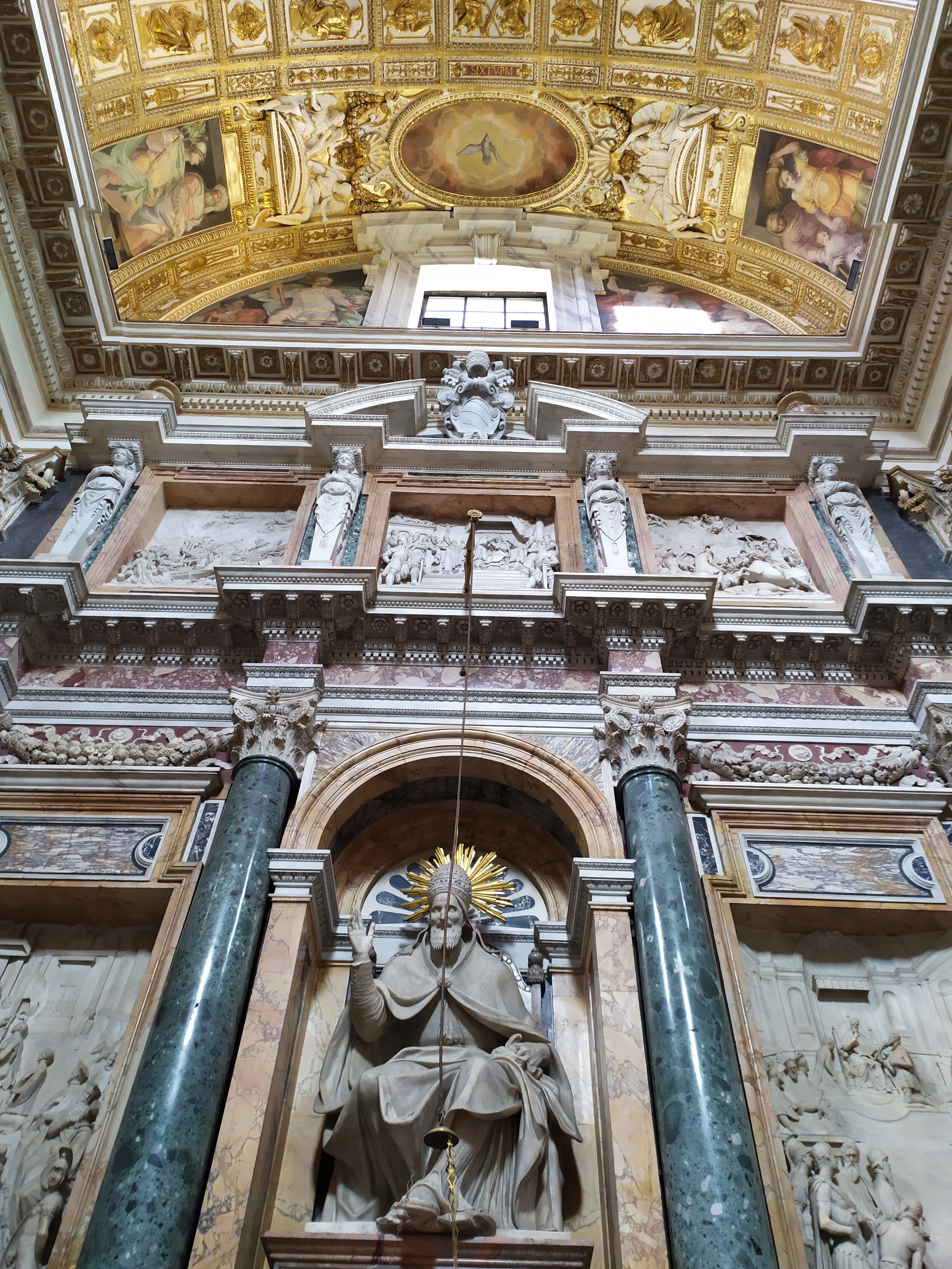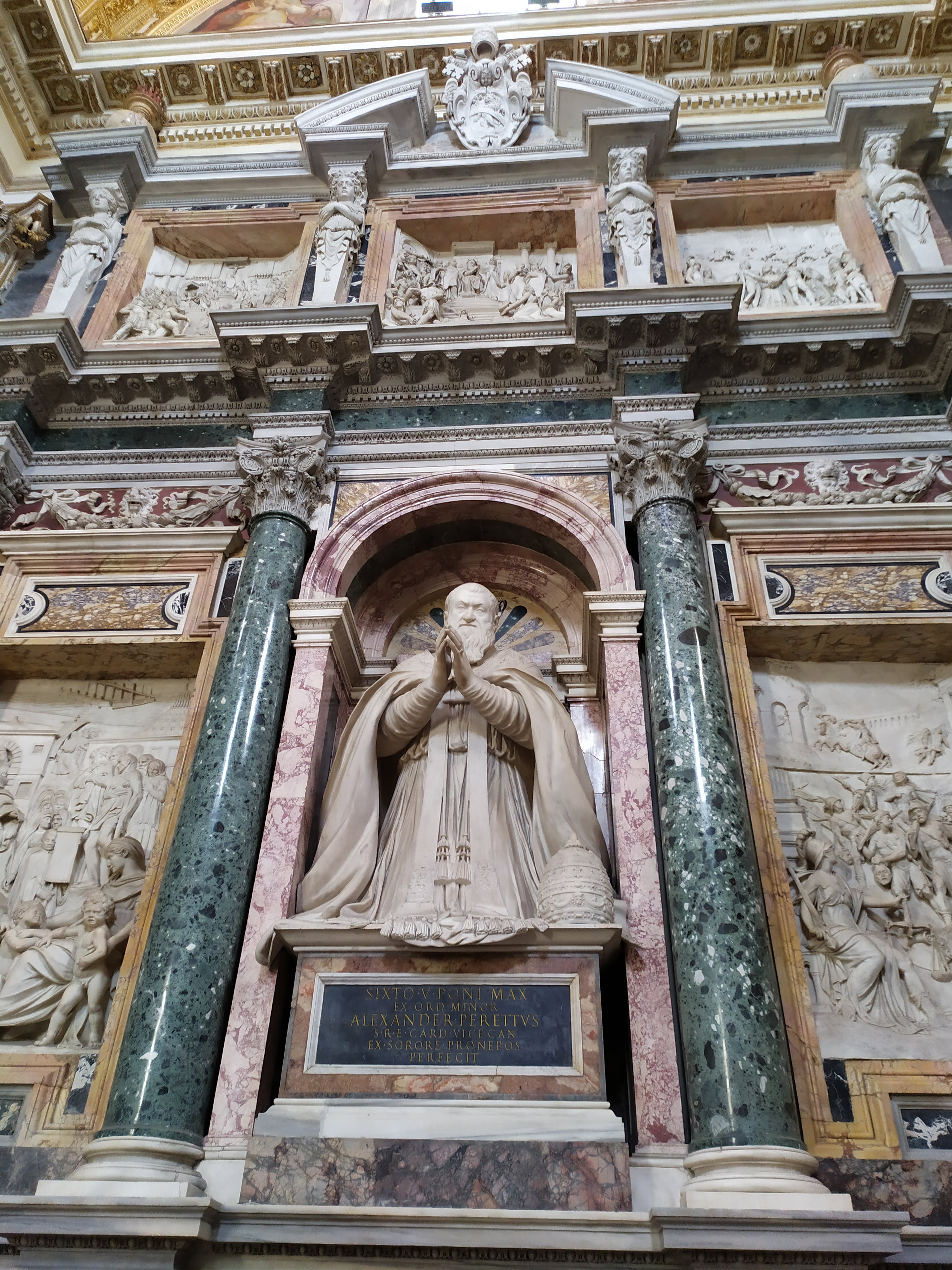 Среди шедевров, созданных известными мастерами эпохи Возрождения, выделяется скульптура Сикста V. Именно этот папа, более чем кто-либо из его предшественников, смог за 5 лет своего понтификата восстановить Вечный город, разграбленный войсками испанского короля Карла V в 1527 году. Взойдя на Святой Престол в 1585 году, Сикст V принялся активно наводить порядок во вверенном ему городе, который в те времена представлял собой самое настоящее логово порока и разврата. Огромные средства, собираемые папским двором, были направлены на культурные, градостроительные и научно-образовательные проекты. Широкомасштабные реставрационные и строительные работы развернулись по всему Риму.