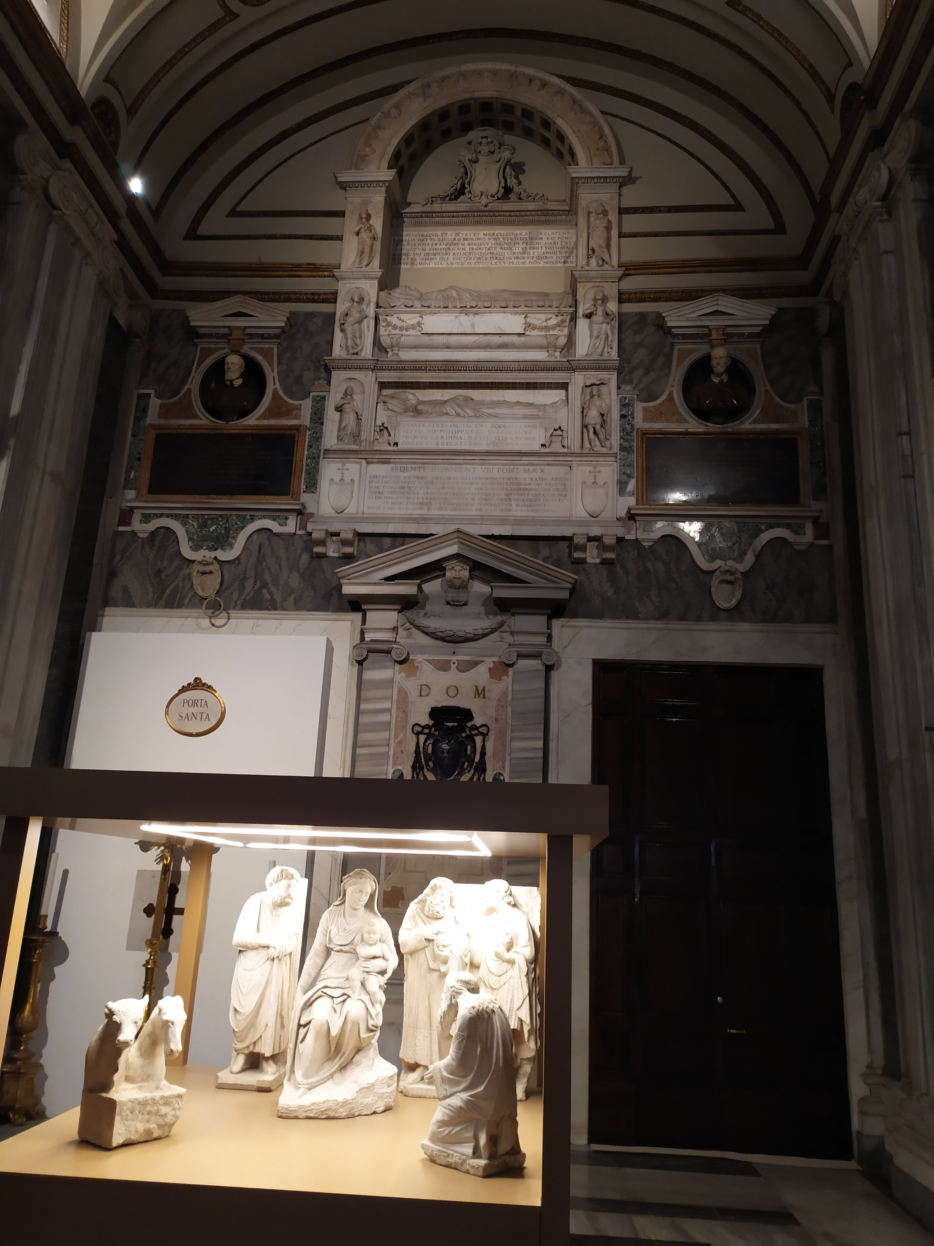 Первая вертепная композиция, воспроизводящая сцену Рождества, была создана по заказу папы Николая IV в 1291 году Арнольфо ди Камбио, одним из ведущих мастеров так называемой «эпохи Данте и Джотто». Неизвестно, сколько фигурок было изначально, но сегодня в базилике Санта-Мария-Маджоре хранятся созданные Арнольфо ди Камбио мраморные фигурки святого Иосифа, трех волхвов, вола и осла. Изображение святого Иосифа считается шедевром. Его сгорбленная поза выражает глубокое размышление. Он со смирением принимает волю божью, но озадачен, поскольку не в состоянии постичь и вместить в себя тайну Рождества Христова. Копия фигурки Девы Марии с младенцем была создана Джованни Антонио Паракка, автором монументальной скульптуры Сикста V в Сикстинской капелле.