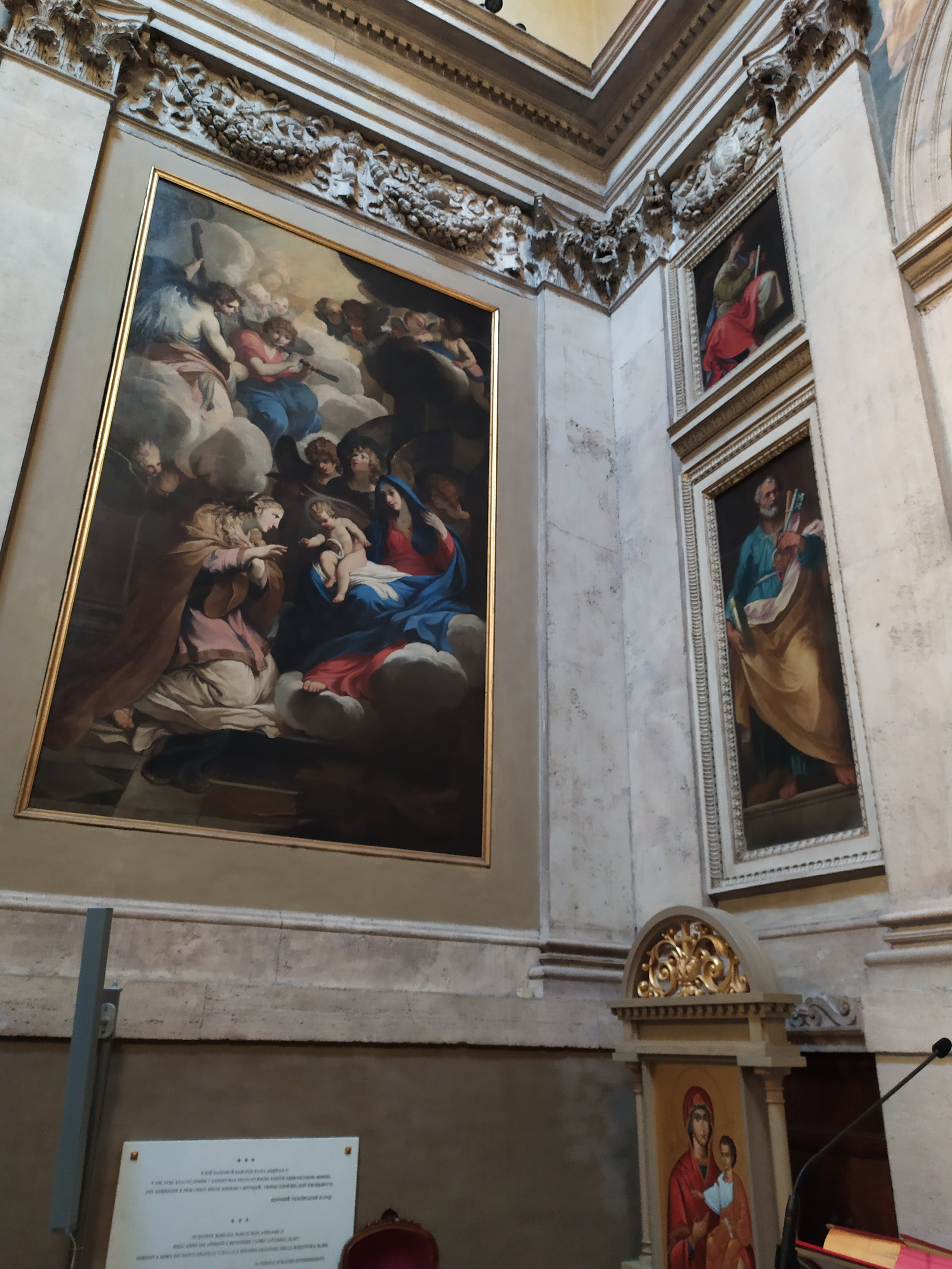 Стены баптистерия украшены памятными табличками, которые напоминают об историческом событии, произошедшем в 867 году, когда в Рим прибыли братья Кирилл и Мефодий, создатели старославянской азбуки и церковнославянского языка. Братья привезли из Херсонеского храма мощи святого Климента, широко почитаемого в Древней Руси, и лично передали их в базилике Санта-Мария-Маджоре папе Адриану II. Про Херсонес, а в древние века он назывался Херсоном, европейцы слышали только как о месте упокоения святого Климента, так как часто спрашивали у великого князя Ярослава Мудрого: «Не в тех ли местах находится Херсон, где, как говорят, почил Климент?». Папа Адриан II, приветствуя Кирилла и Мефодия в базилике Санта-Мария-Маджоре, в благодарность за столь ценный подарок устроил им небывалое чествование, а также утвердил богослужение на славянском языке и приказал положить в римских церквях книги переведенные с греческого на славянский язык.
