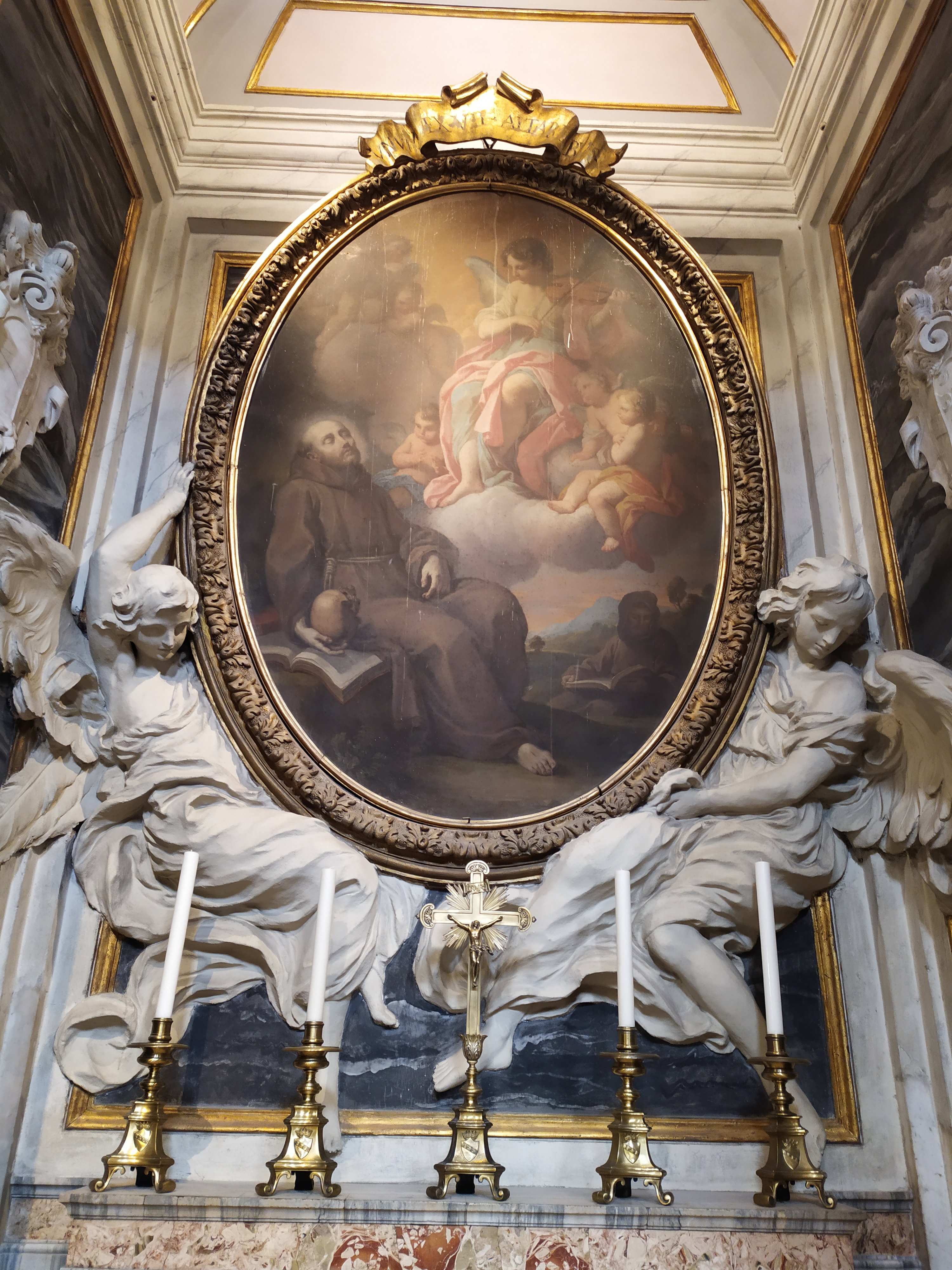 На алтарной фреске «Экстаз святого Франциска Ассизского» представлен святой в состоянии духовного экстаза, связанного с его частыми видениями. Образ святого Франциска всегда был настолько притягателен, что о нем восторженно писали даже те, кто придерживался подчас противоположных убеждений. Так, русский писатель и поэт Дмитрий Мережковский в легенде «Франциск Ассизский» писал: