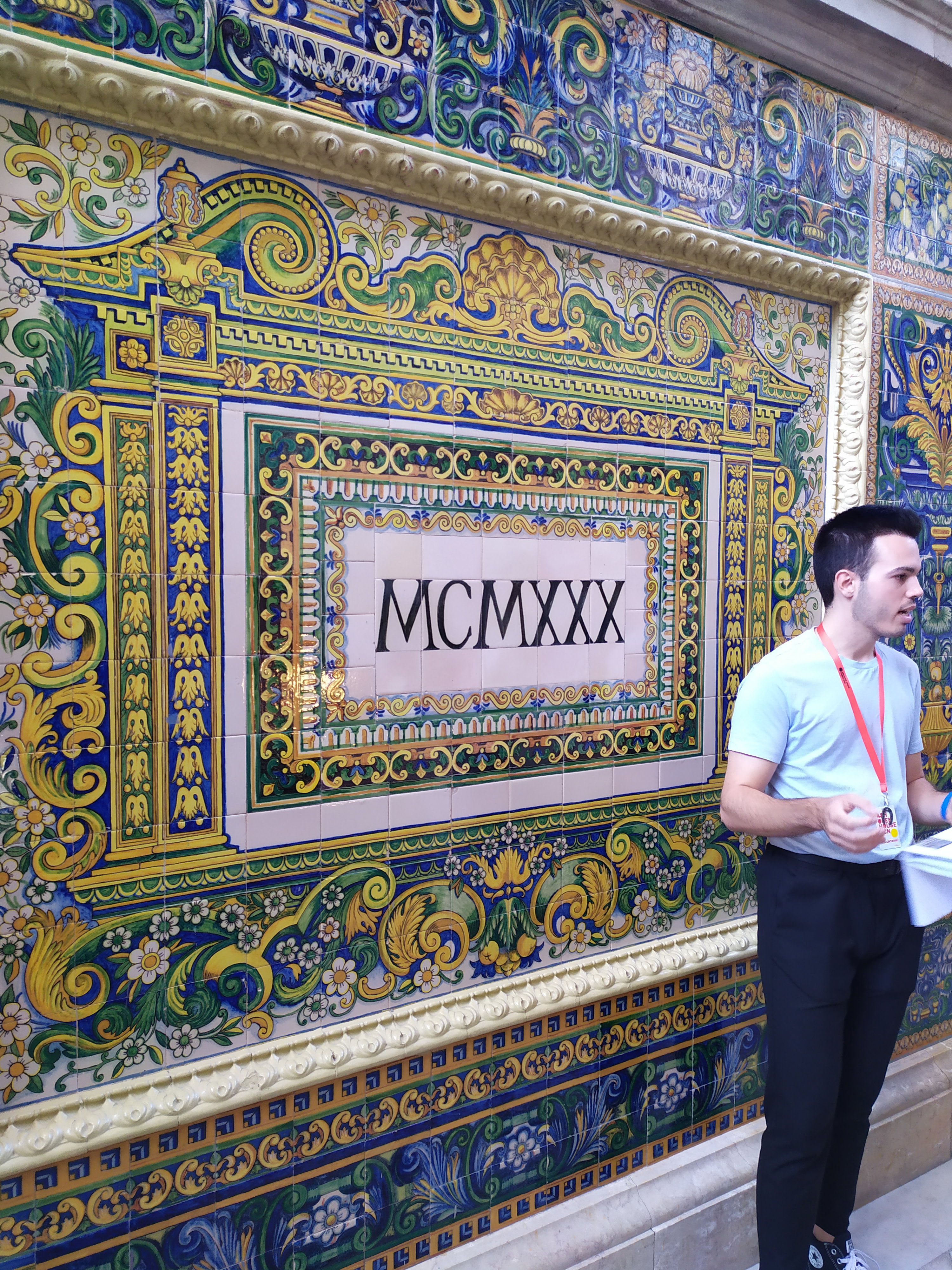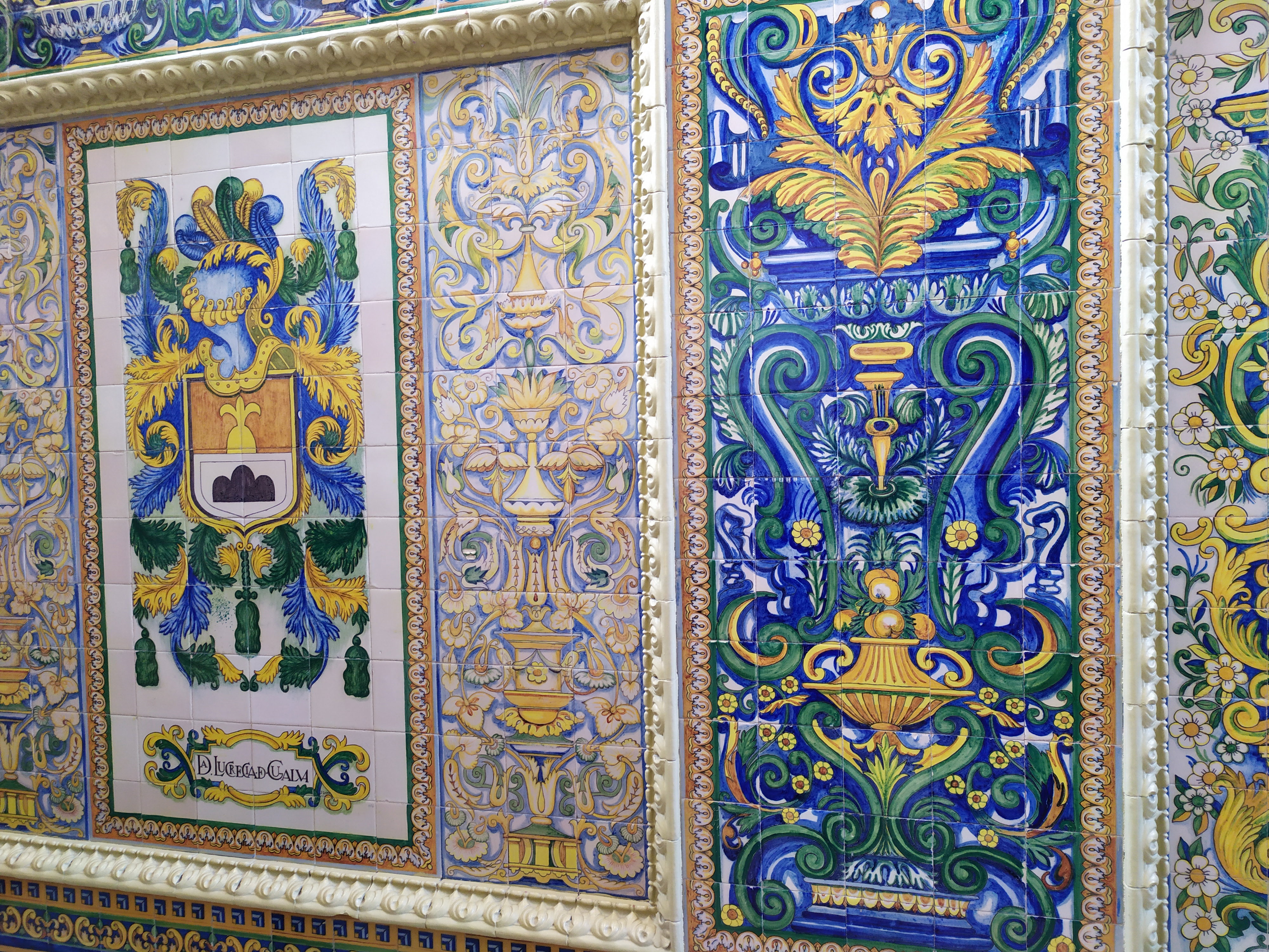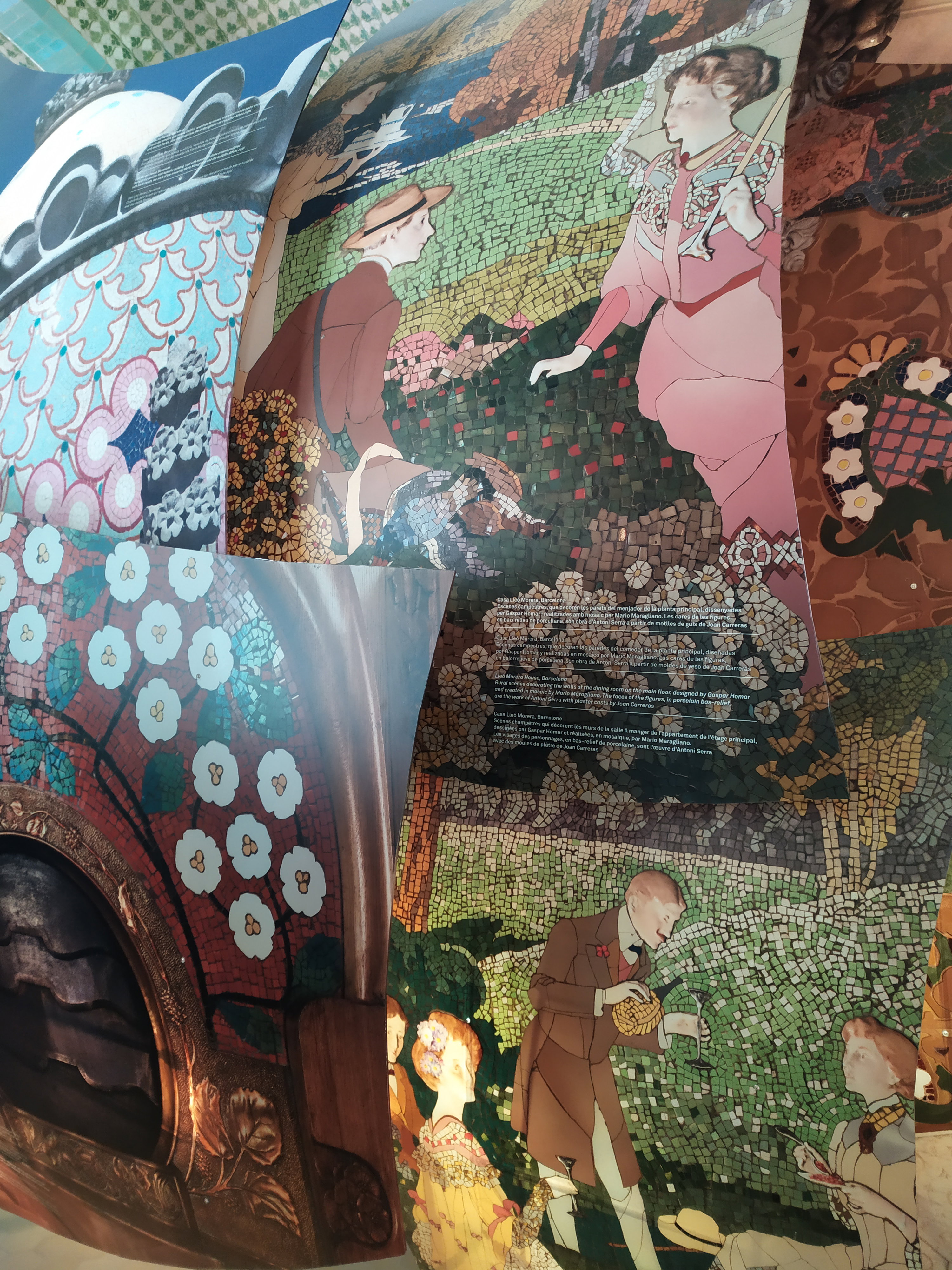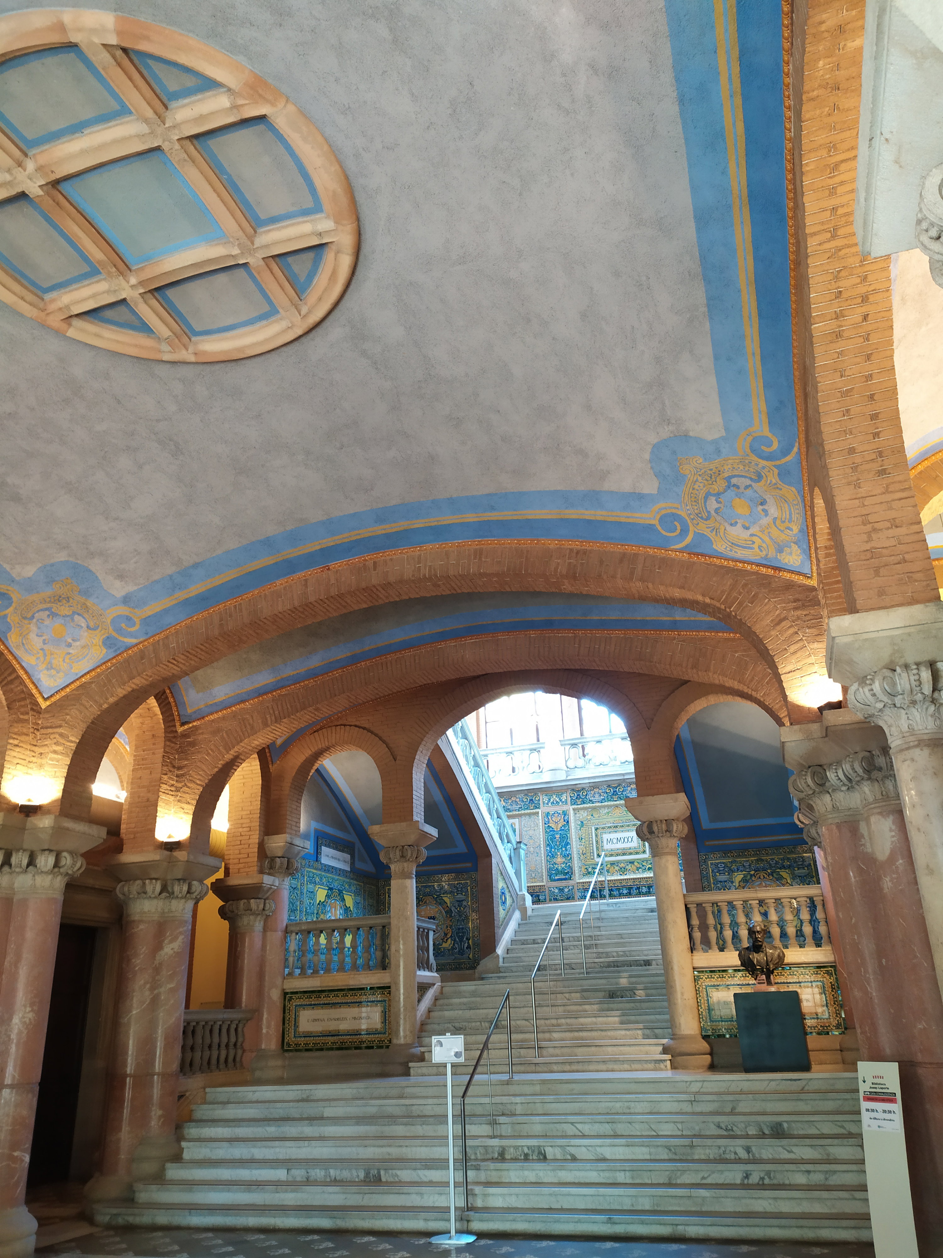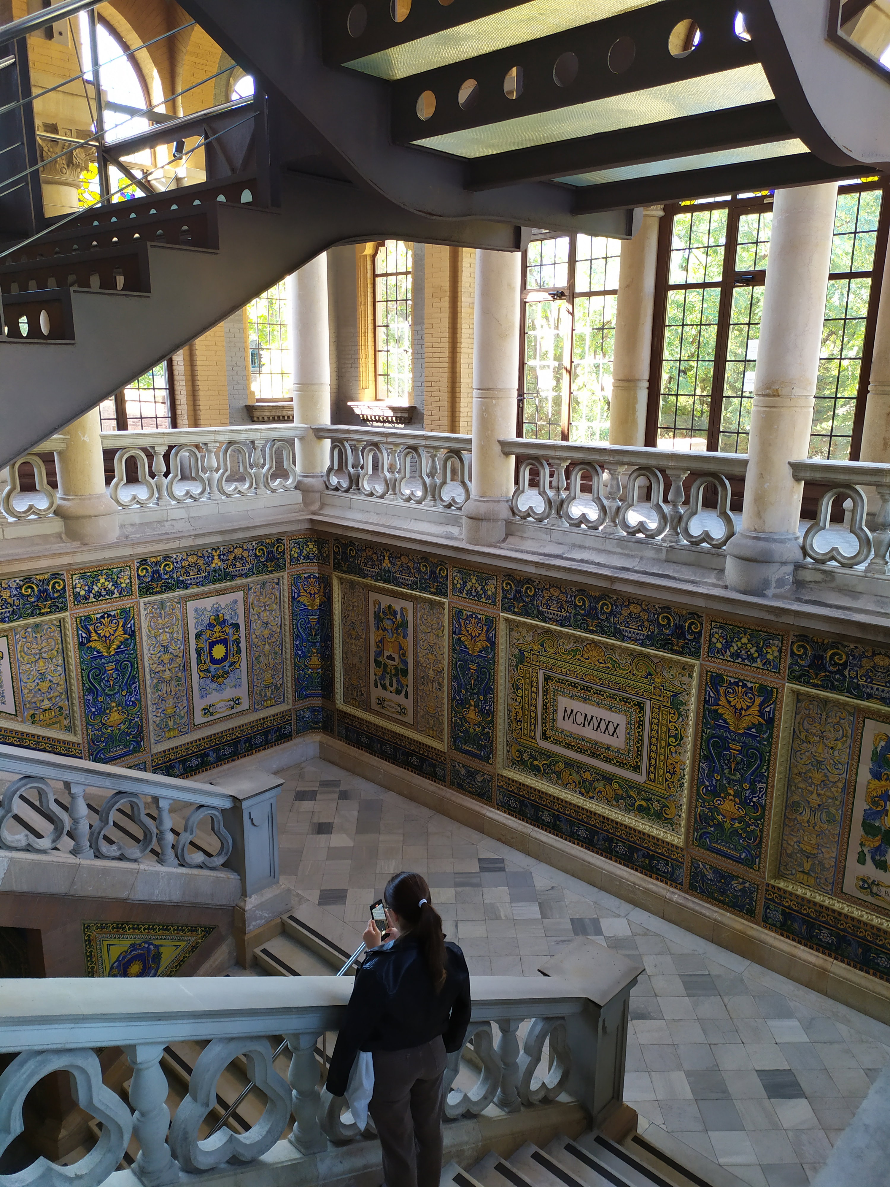 Вестибюль первого этажа украшен керамическими панно с изображениями, рассказывающими об истории строительства корпуса для пациентов, выздоравливающих после лечения в госпитале Сан-Пау (римская цифра MCMXXX означает 1930 год – год строительства корпуса).