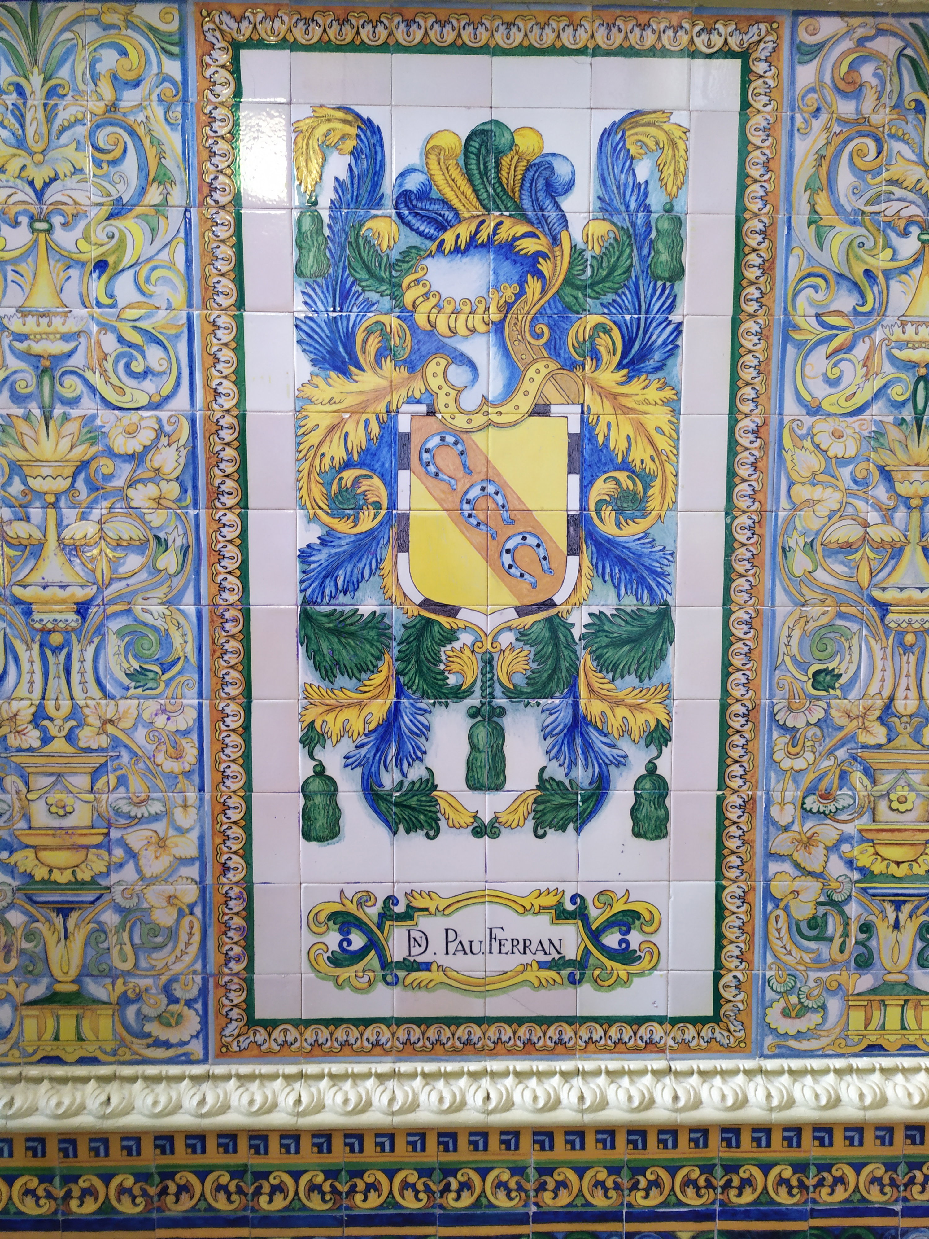 На одном из панно увековечено имя Пау Феррана, ректора Барселонского университета общих знаний с 1620 года, а также представлен герб (пояс с подковами) его семейства. Это своего рода знак благодарности за средства, которые он завещал на строительство при госпитале Санта-Креу корпуса для выздоравливающих пациентов.