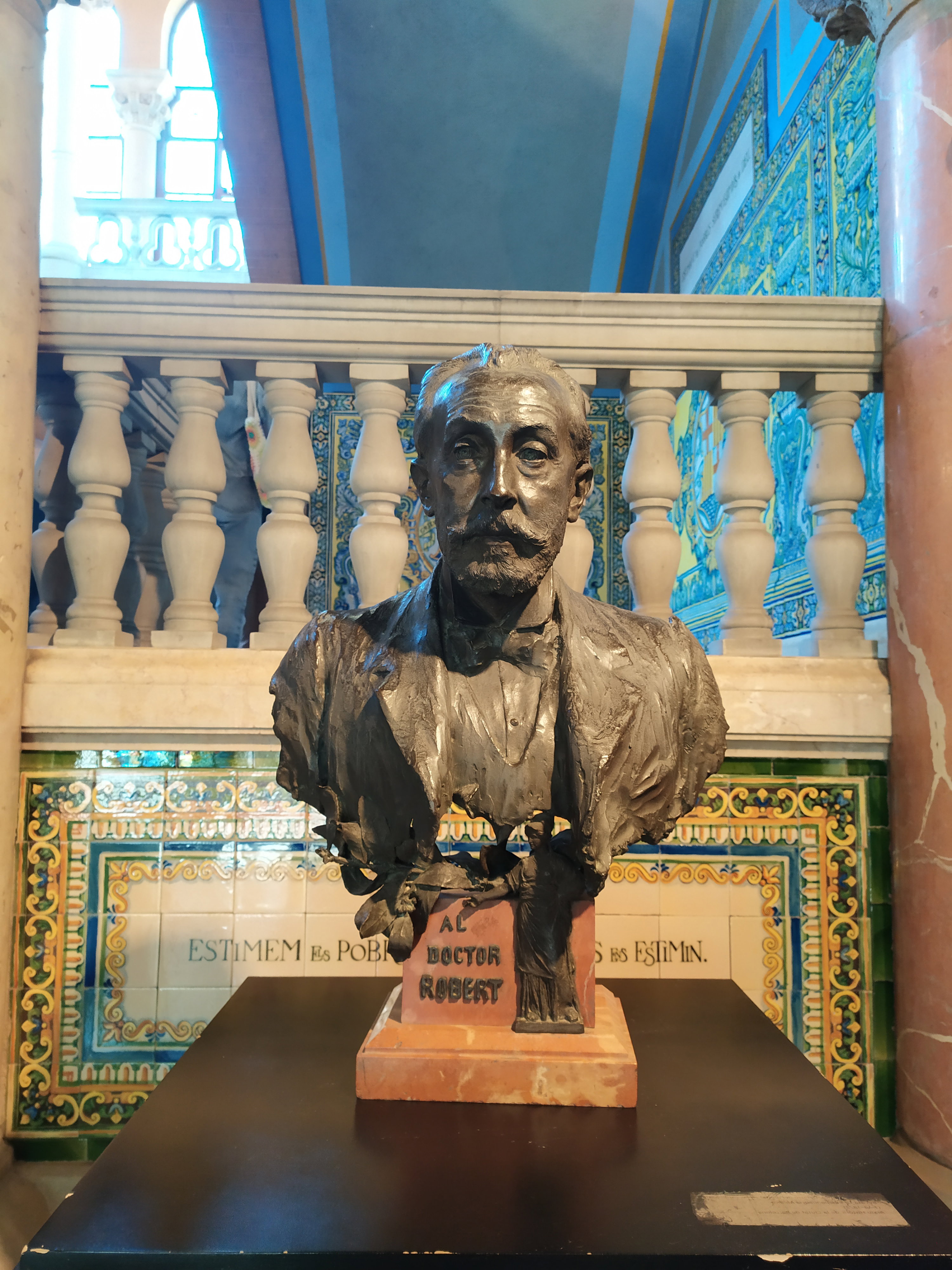 Нужно сказать, что к концу 19-го века ситуация в главном медицинском центре Барселоны стала критической – он окончательно устарел и перестал отвечать стандартам нового времени. Тут-то и появился человек, благодаря которому началось грандиозное строительство нового госпиталя. Речь идет о каталонском банкире Пау-Хиль-и-Серра, который в своем завещании, составленном за 4 года до смерти, распорядился ликвидировать основанный им банк в Париже с тем, чтобы на вырученные средства построить в Барселоне новый госпиталь. Согласно воле банкира госпиталь должен носить его имя, что оговаривалось в завещании особо. Желание мецената, на мой взгляд, представляется логичным и правомерным. Сегодня бюст банкира Пау-Хиль-и-Серра красуется у входа в главный корпус госпиталя Сан-Пау.