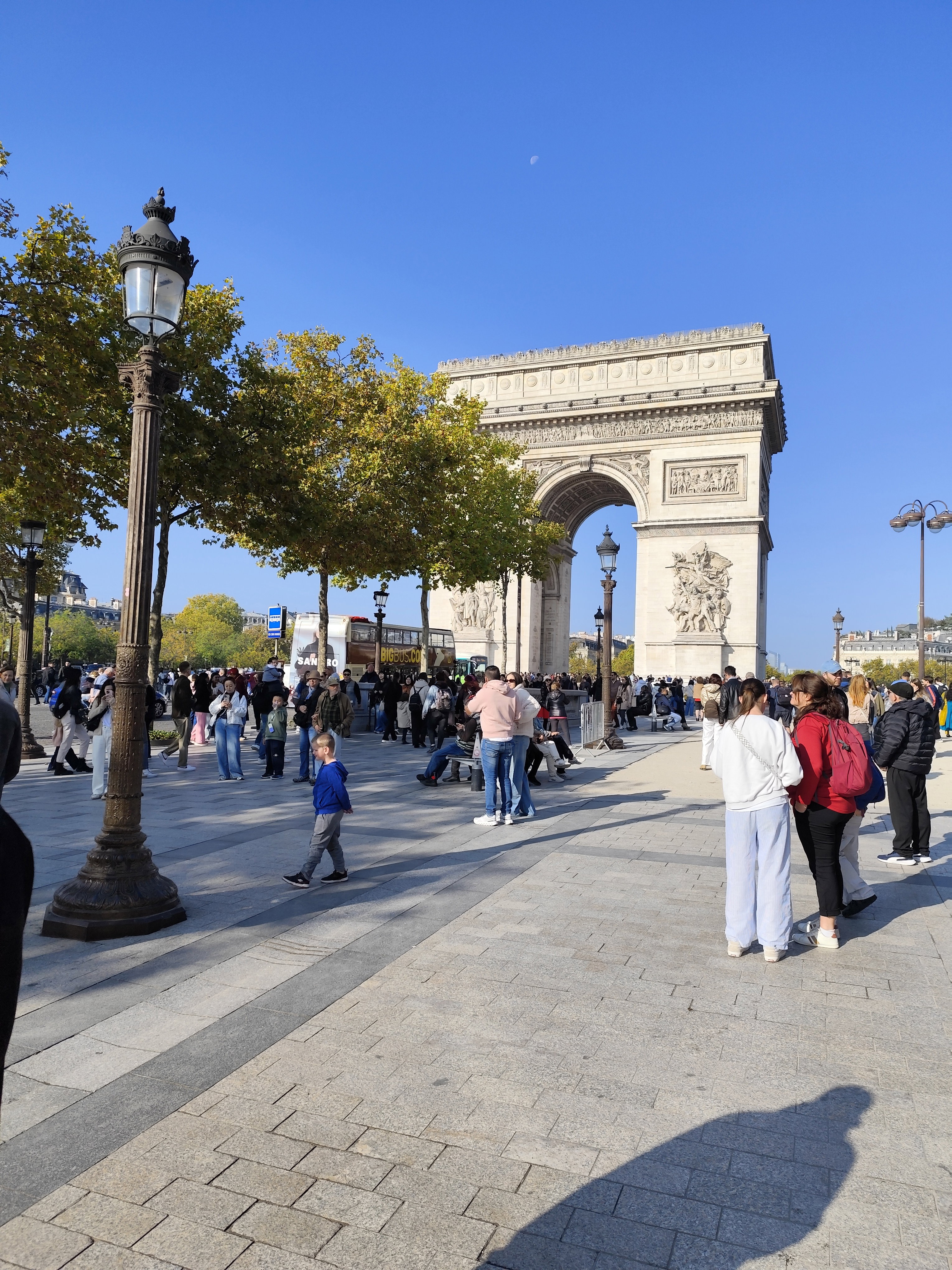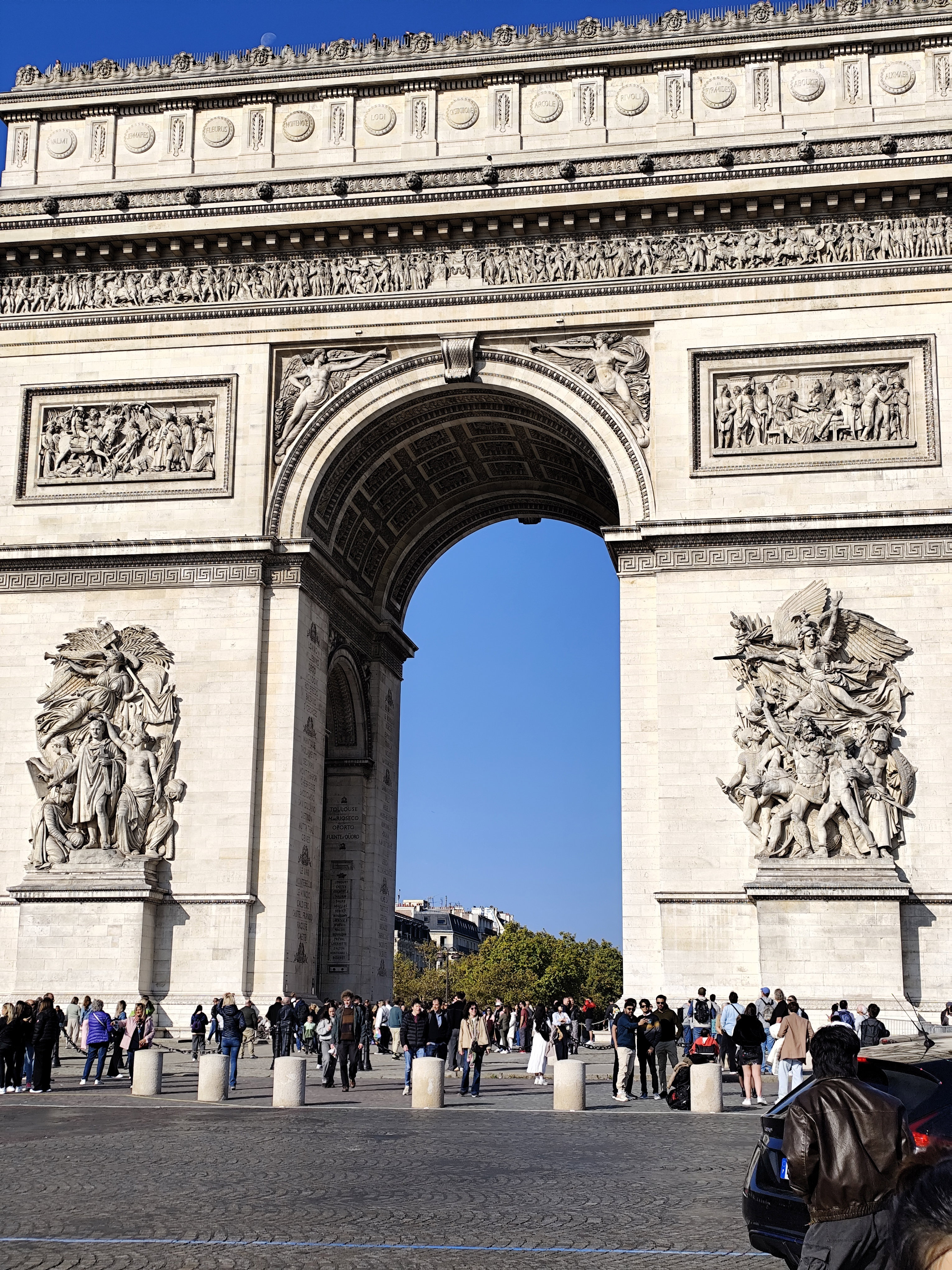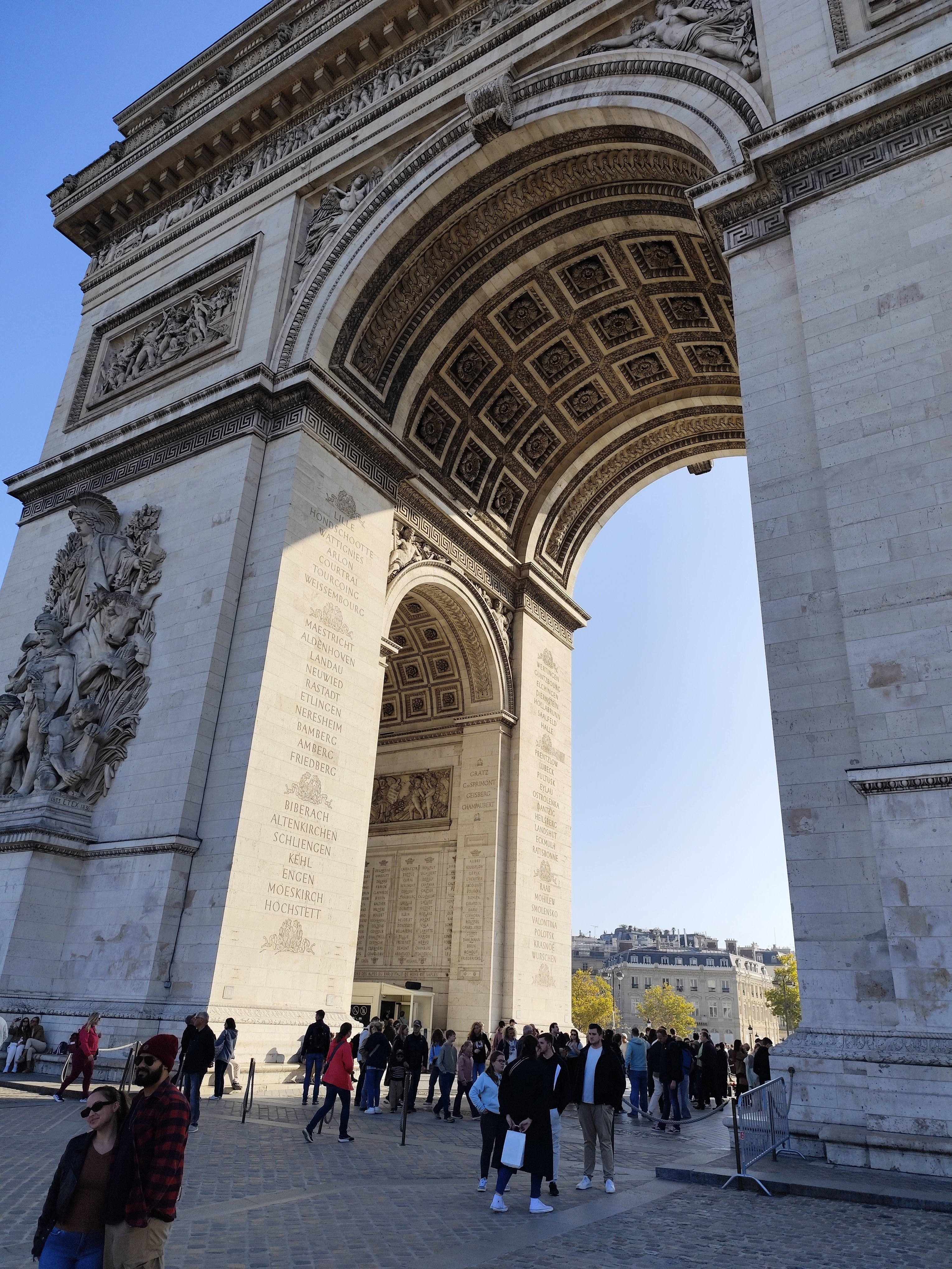 Триумфальная арка, на строительство которой ушло три десятилетия, была открыта в 1836 году в честь 6-ой годовщины Июльской революции 1830 года. Это была самая большая триумфальная арка в мире до тех пор, пока ее не превзошла в 1982 году аналогичная арка в Пхеньяне, столице КНДР. Украшенная рельефами со сценами из истории Великой французской революции, именами 660 французских военачальников и названиями 158 выигранных сражений, Триумфальная арка стала важнейшим местом национальной памяти для французов. Арка окружена 100 гранитными тумбами, которые были установлены в честь «Ста дней» правления Наполеона Бонапарта после его возвращения к власти в 1815 году. Именно под сводами Триумфальной арки 15 декабря 1840 года был торжественно провезен прах легендарного императора Наполеона, который доставили с острова Святой Елены и захоронили в соборе Святого Людовика при Доме инвалидов.
