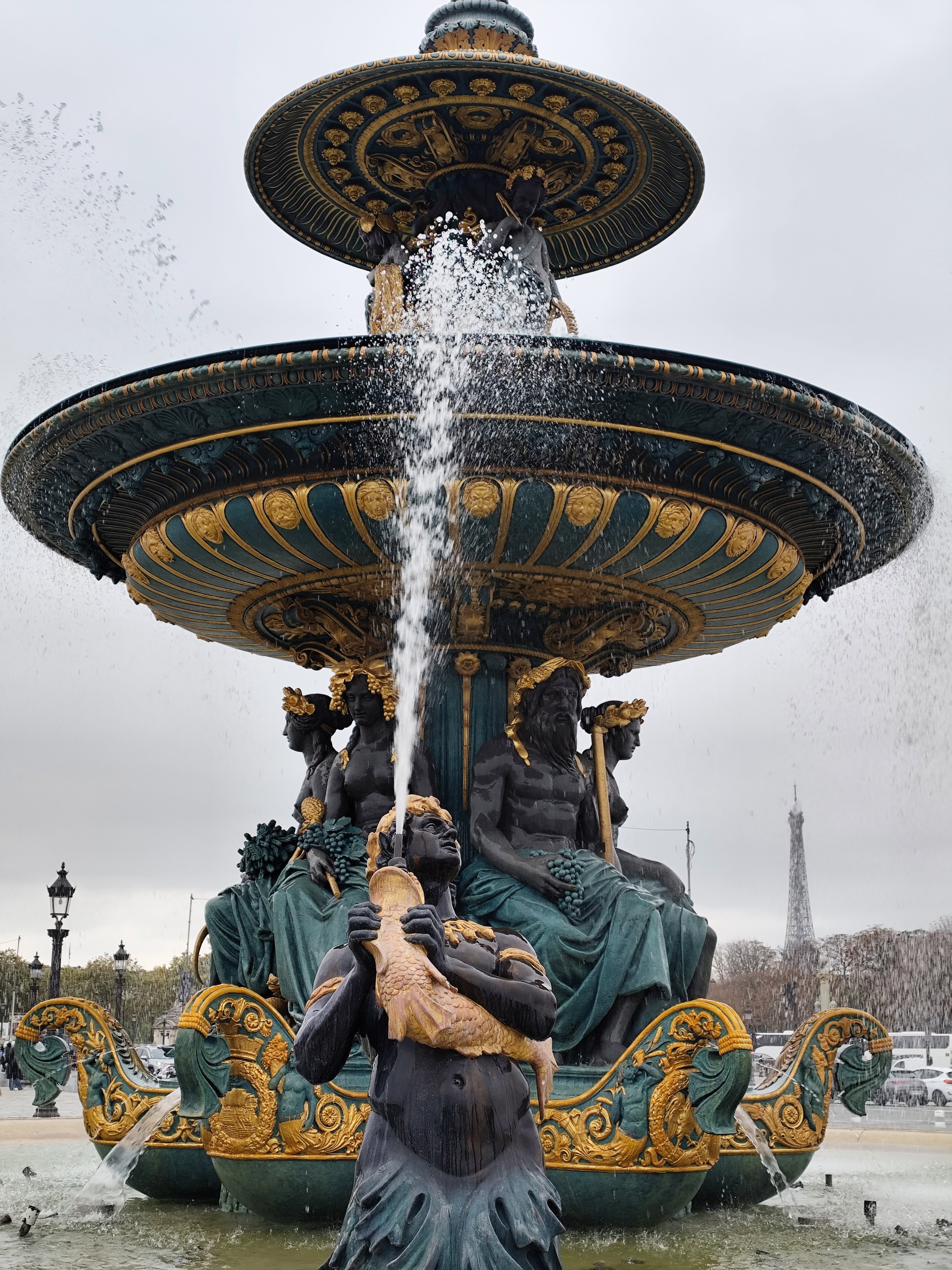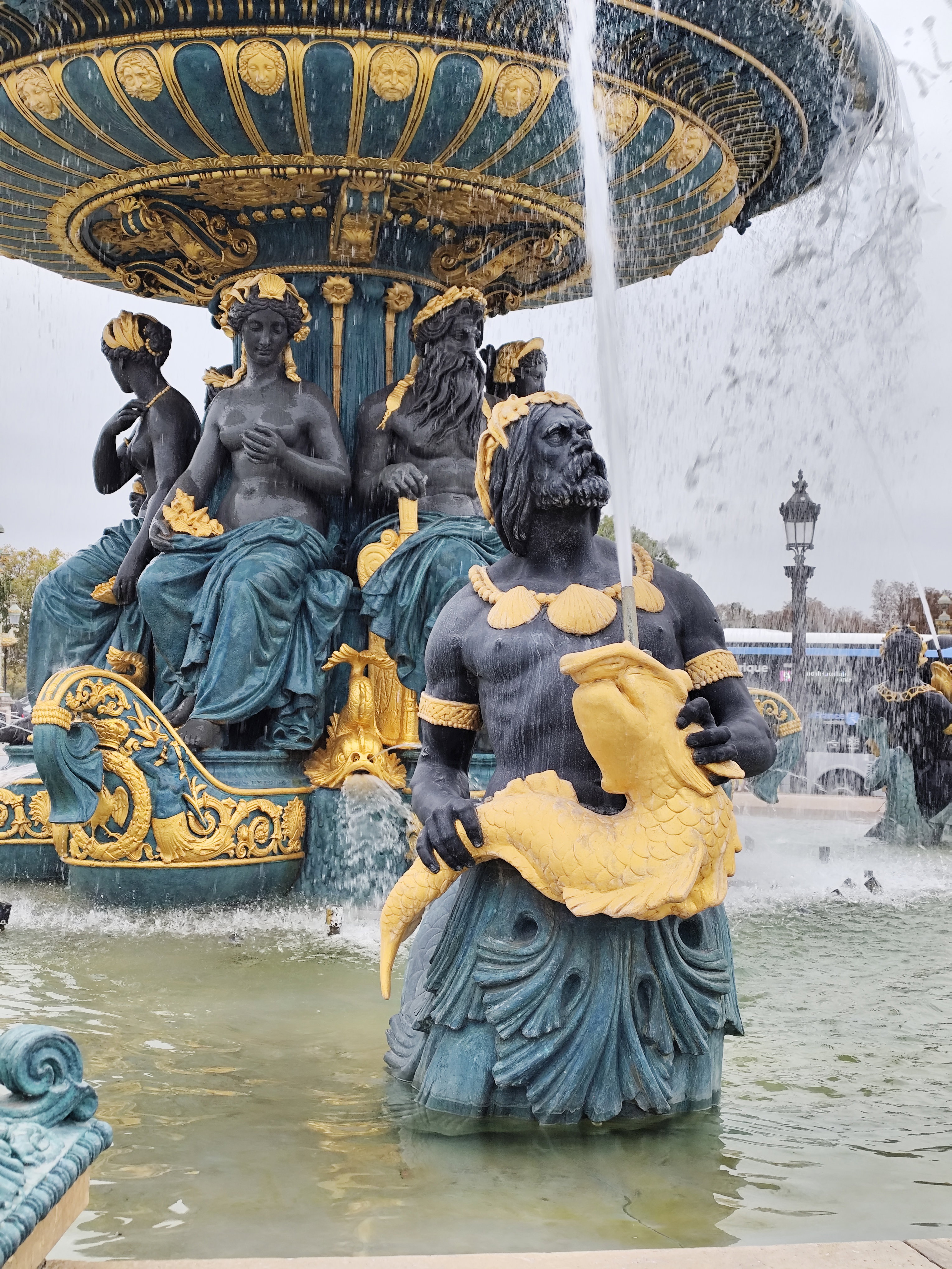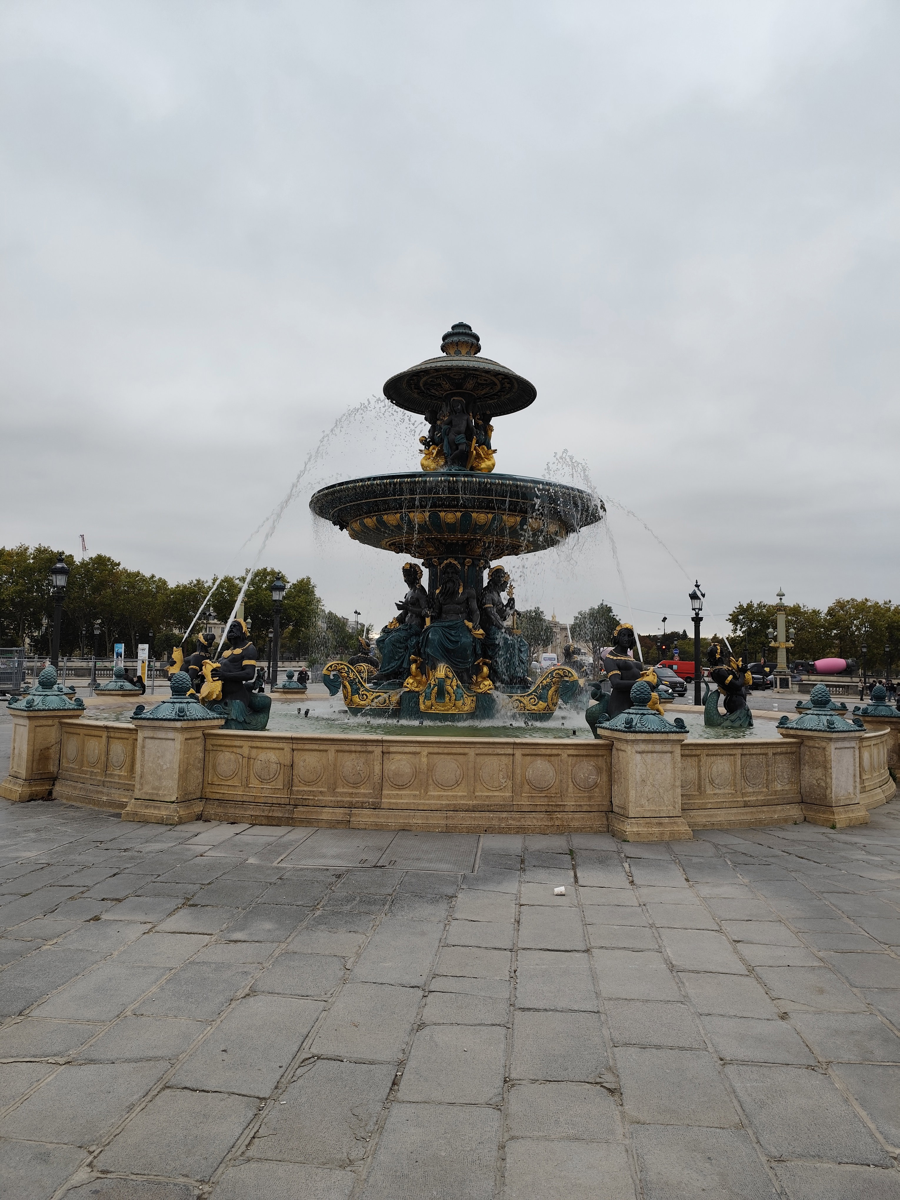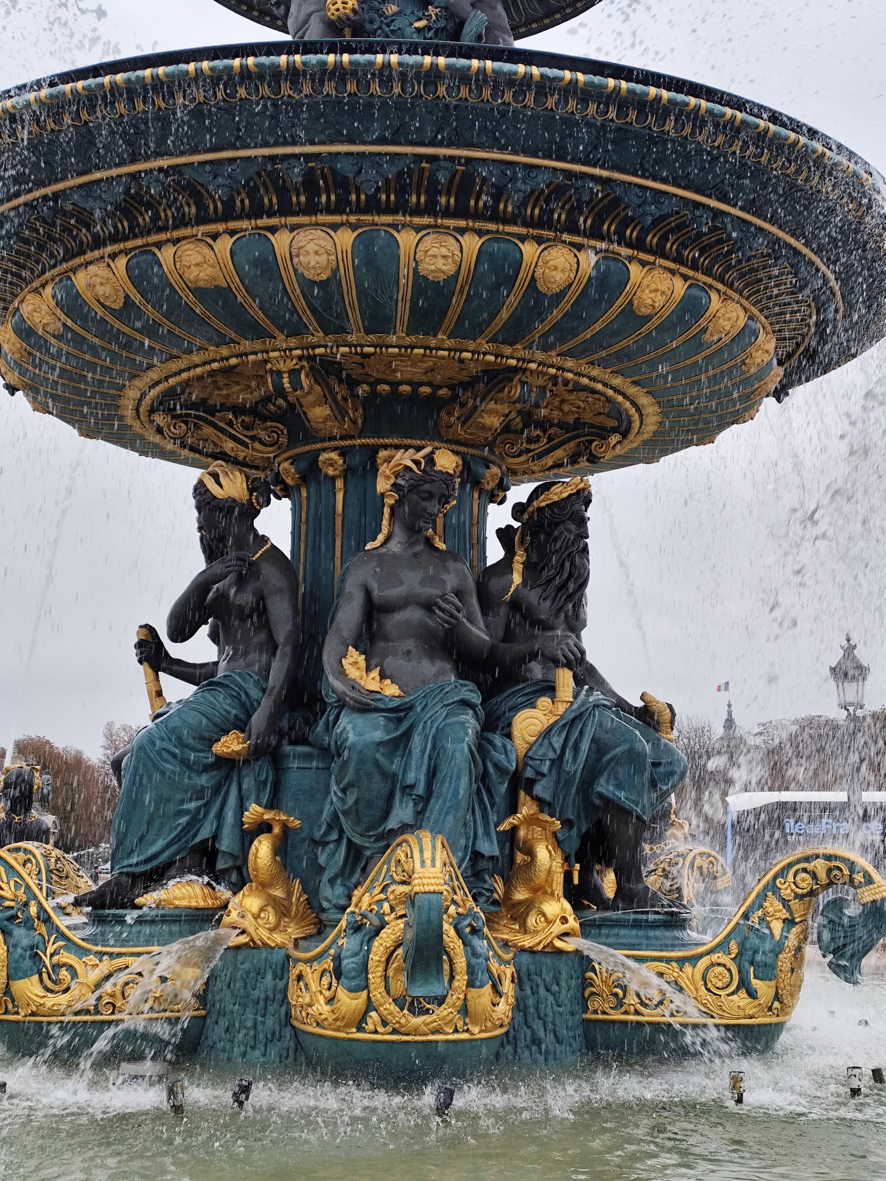 Решительно изменился облик площади в 1836 году, когда ее украсили двумя монументальными фонтанами, 20 фонарными столбами с военно-морской символикой и 23-метровым египетским обелиском. Фонтан рек (верхние фото) символизирует речное судоходство Франции и украшен аллегорическими скульптурами, олицетворяющими реки Рейн и Рону, а также грузоперевозку продукции сельского хозяйства по французским рекам.