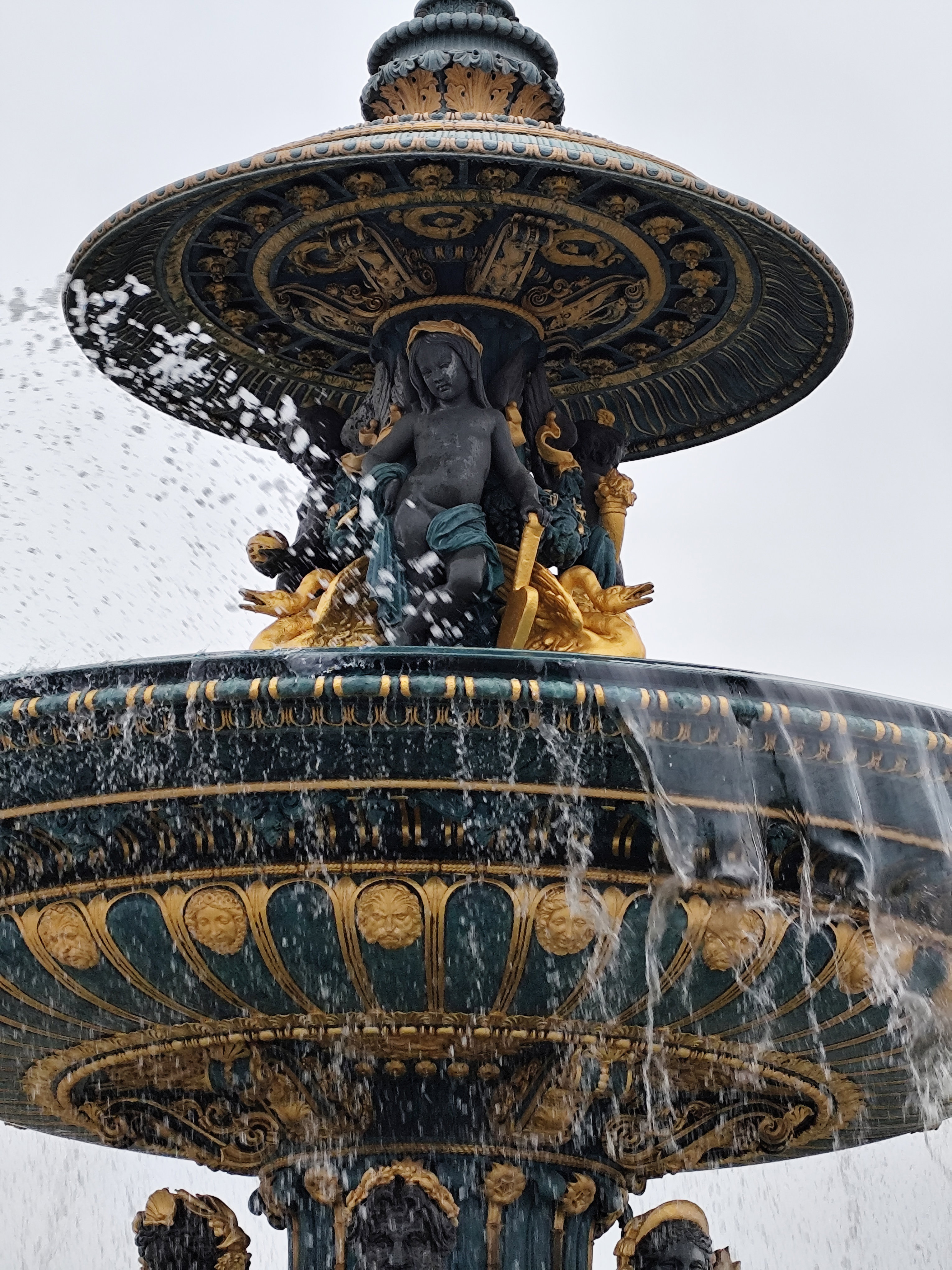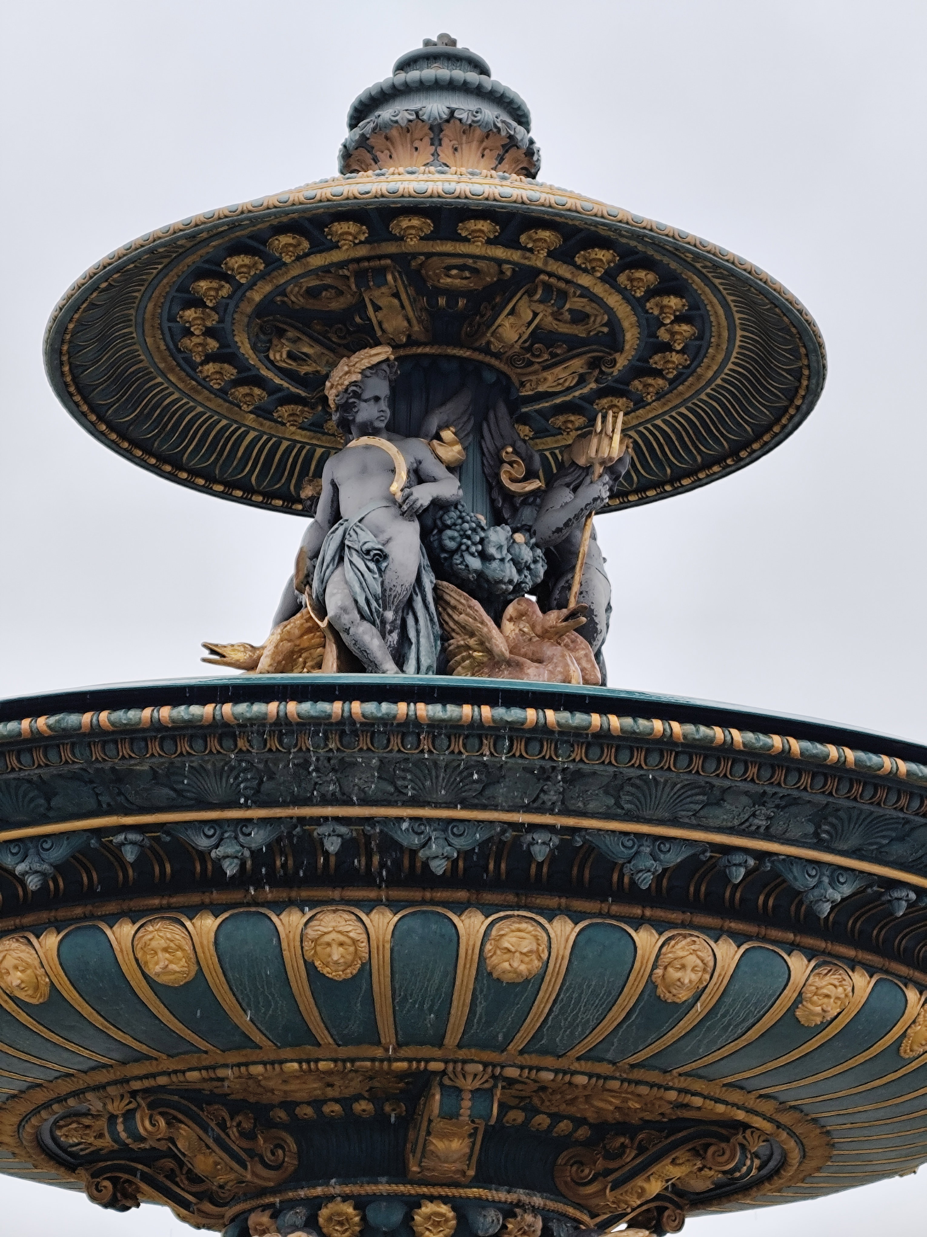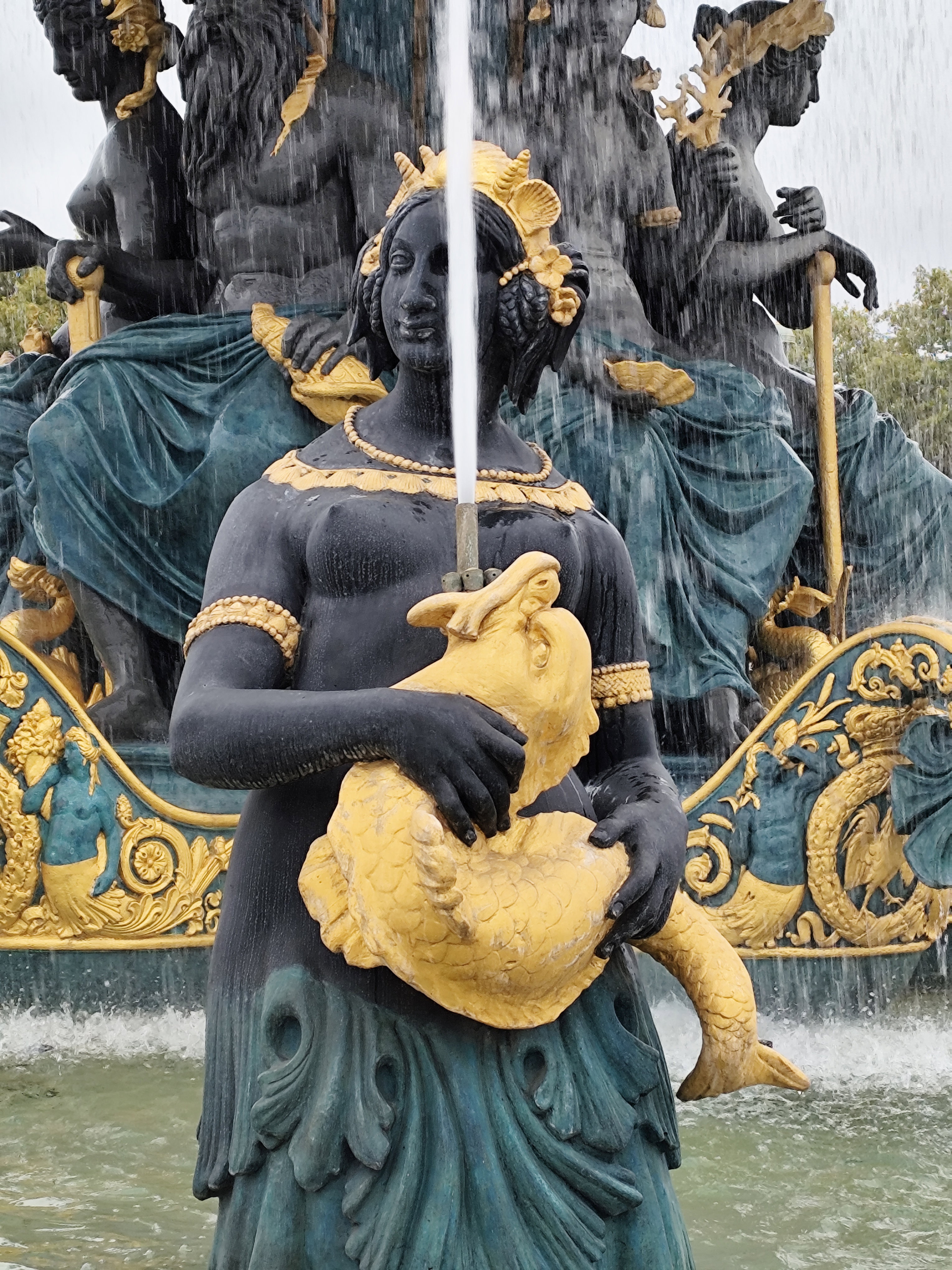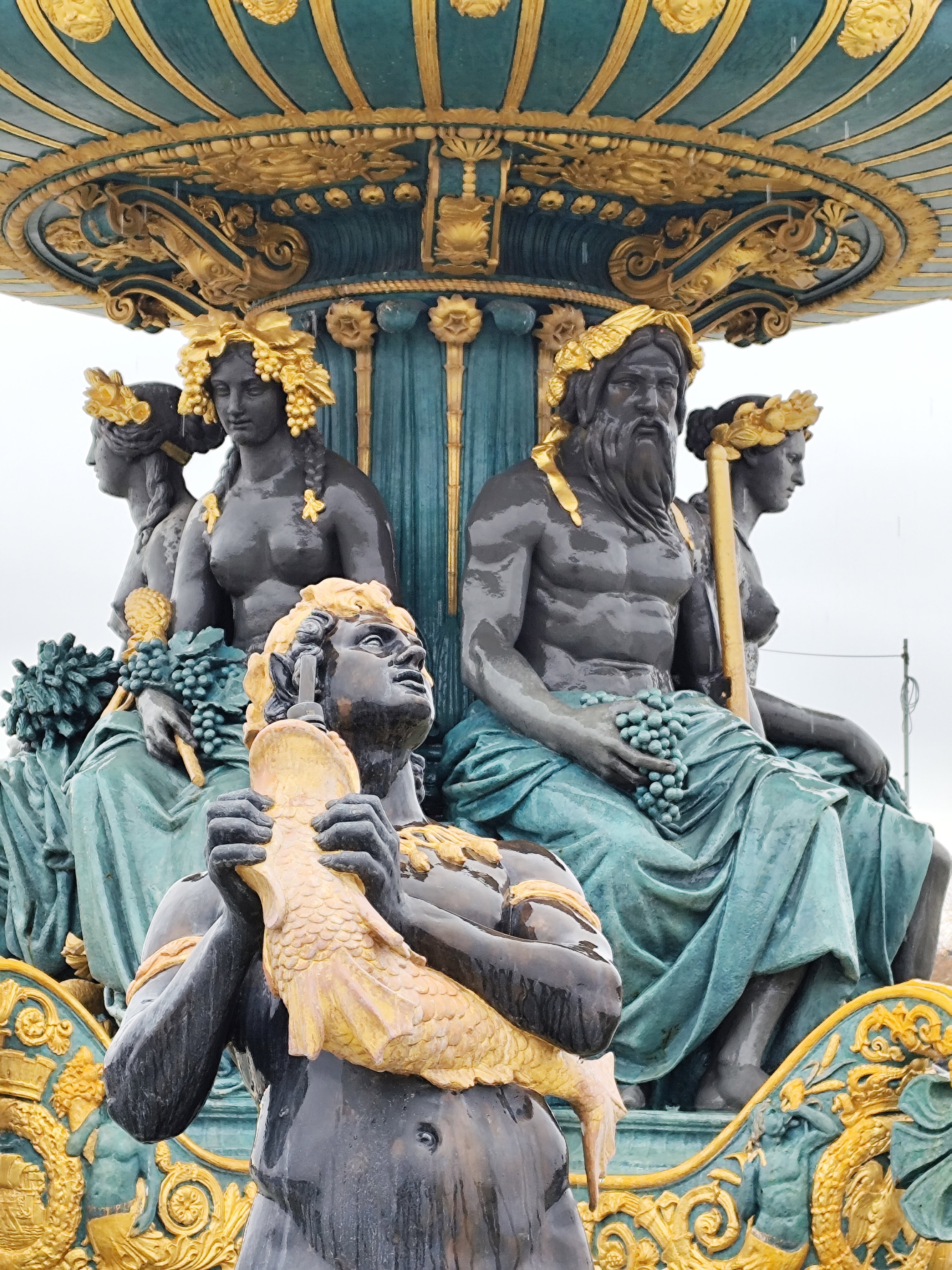 Решительно изменился облик площади в 1836 году, когда ее украсили двумя монументальными фонтанами, 20 фонарными столбами с военно-морской символикой и 23-метровым египетским обелиском. Фонтан рек (верхние фото) символизирует речное судоходство Франции и украшен аллегорическими скульптурами, олицетворяющими реки Рейн и Рону, а также грузоперевозку продукции сельского хозяйства по французским рекам.