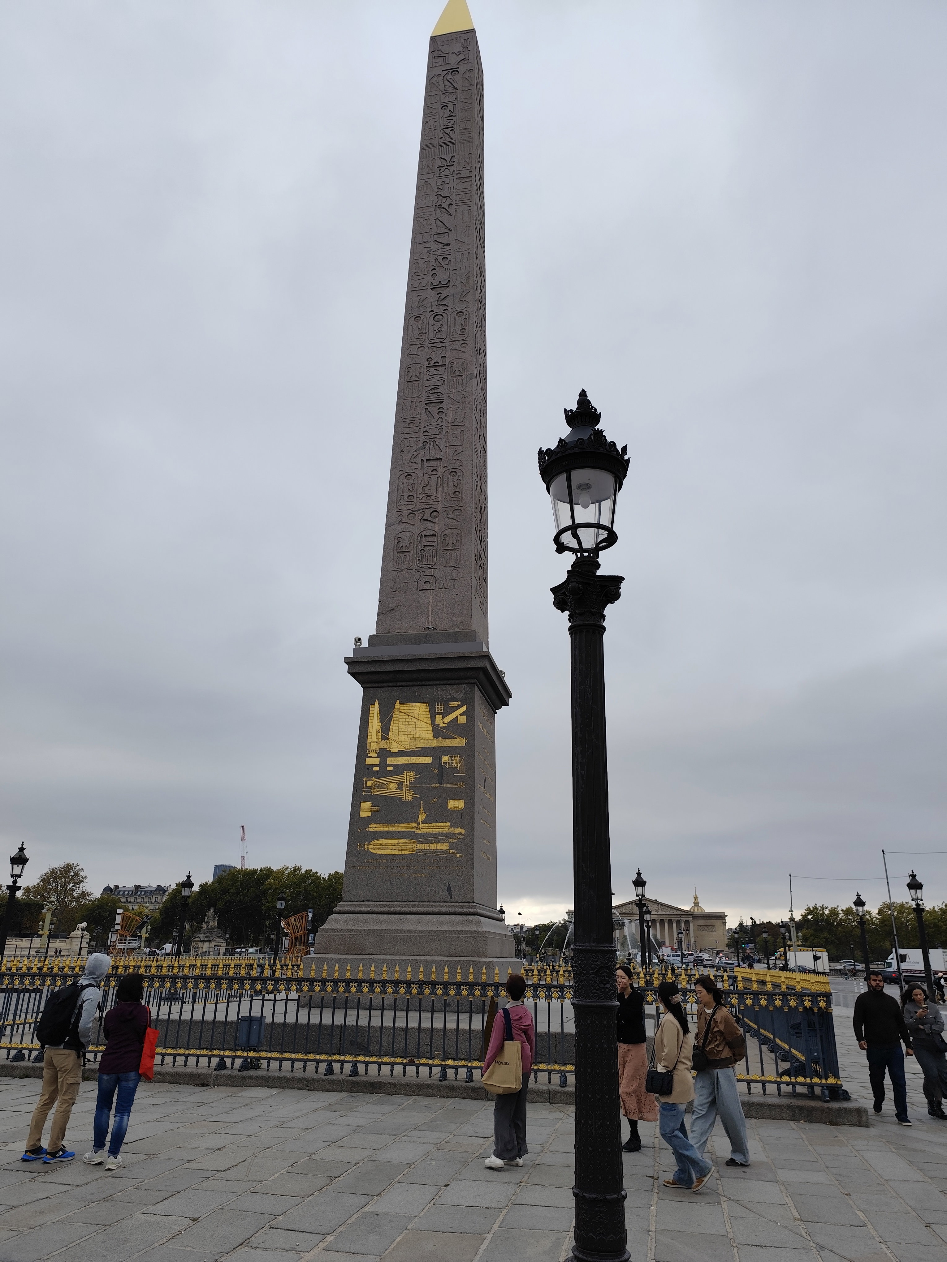 Центр площади украшен 23-метровым египетским обелиском из розового гранита, созданным аж во времена правления фараона Рамзеса II (примерно в 12 веке до н.э.). Египетская кампания 1798-1801 годов, предпринятая по инициативе и под руководством Наполеона Бонапарта, привела к стремительному росту интереса к истории Древнего Египта. Одновременно началась охота за наследием фараонов, в которой вечные соперники, Париж и Лондон, проиграли Риму целых 12 обелисков. В 1829 году, чтобы умиротворить монархов Франции и Англии, египетский правитель Мухаммед-Али решил подарить обеим странам по обелиску, которые в то время украшали вход в Луксорский храм. Хитрые французы, приехавшие в Египет раньше англичан, сумели выпросить для себя оба Луксорских обелиска. Выпросить, то выпросили, а перевезти смогли только один.