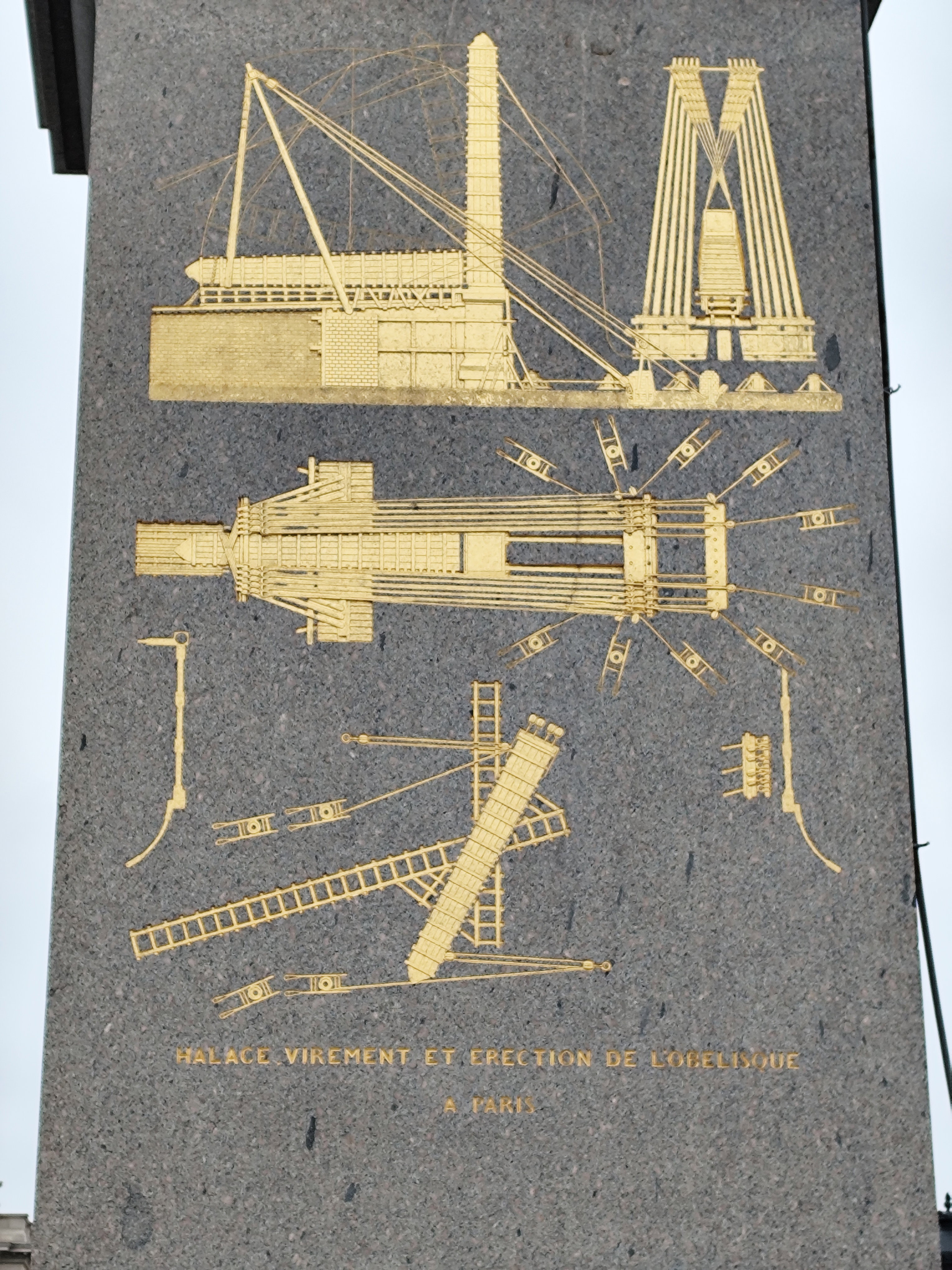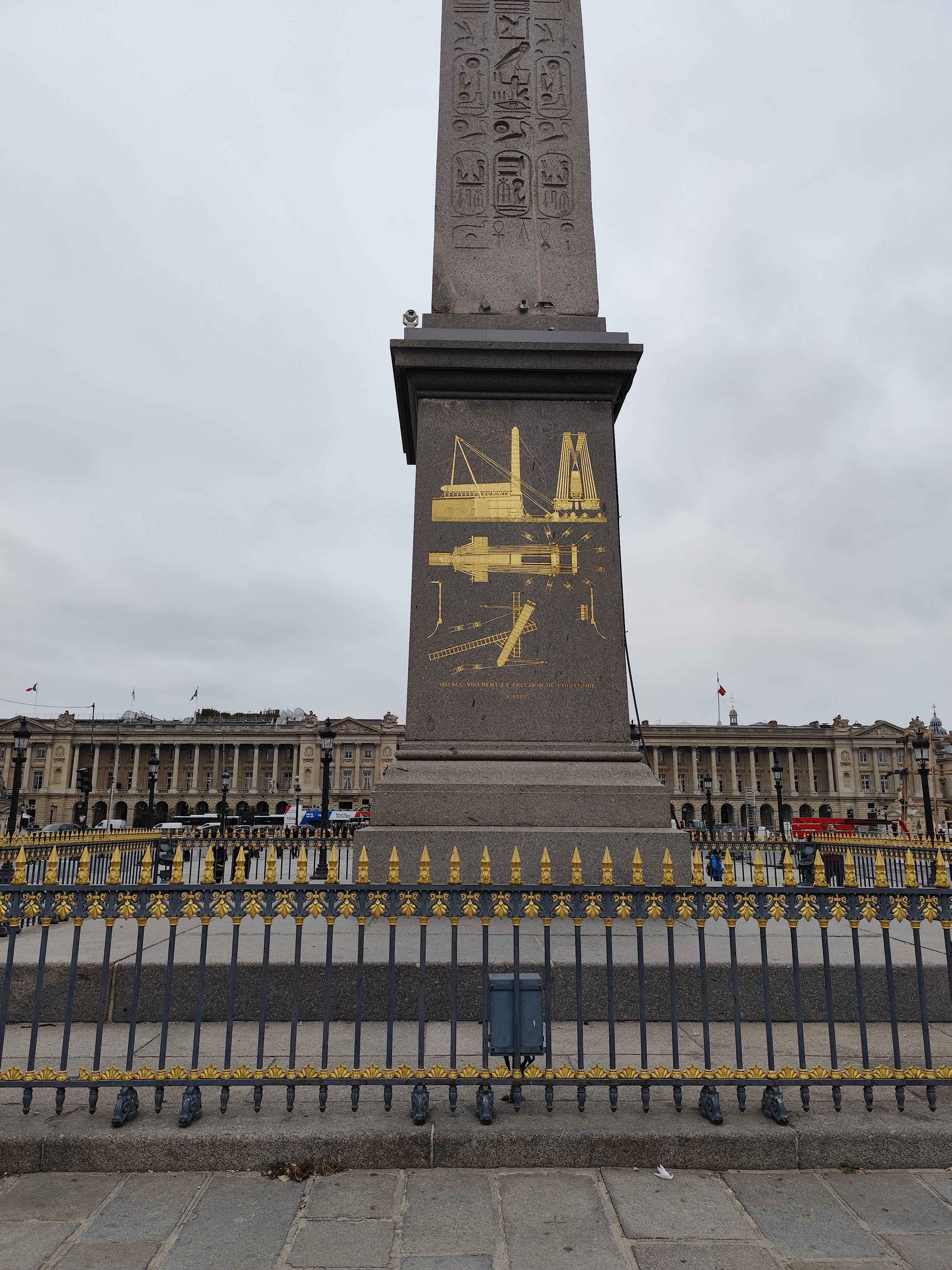 Операция по транспортировке обелиска оказалась для того времени сложнейшим инженерным вызовом. При этом военно-морское министерство Франции потратило более миллиона франков и почти 7 лет активных работ. Для перевозки обелиска была специально построена транспортная баржа «Луксор». Обратный путь из Египта во Францию занял около двух лет. Но, когда обелиск увидели во Франции, возникла морально-нравственная проблема. Оказалось, что его постамент украшают 16 бабуинов, которые, стоя на задних лапах, откровенно демонстрируют свою половую принадлежность. Французское общество посчитало это крайне непристойным, и власти приняли решение создать новый постамент, а оригинальный передать в Лувр. Новый постамент украсили схемами, иллюстрирующими сложные технологические процессы снятия обелиска в Египте, его доставки в Париж и установки на площади Согласия.